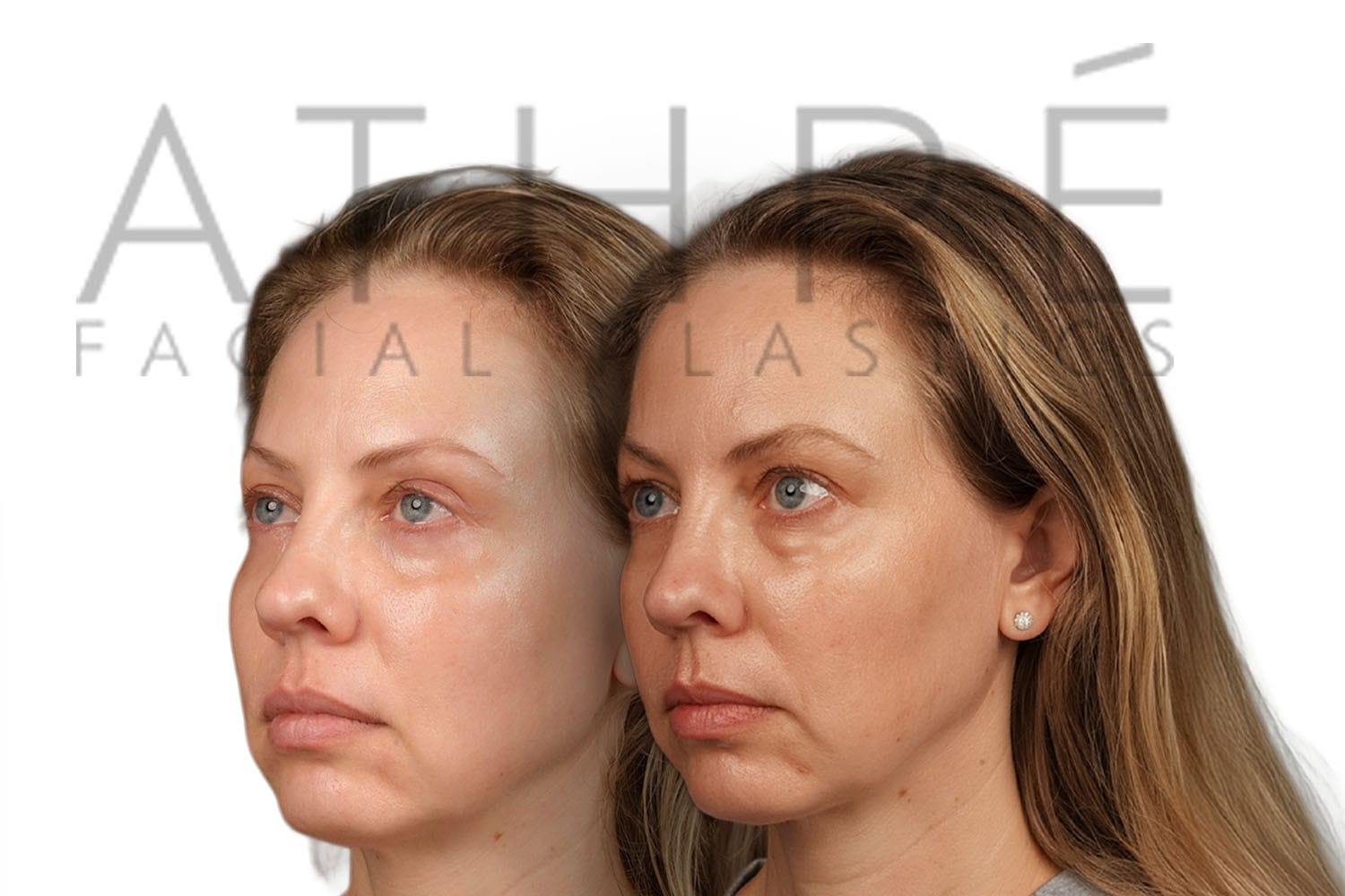 Female patient after upper blepharoplasty, and lower eyelid laser blepharoplasty with fat grafting. Patient also had SMAS lift with neck lift.