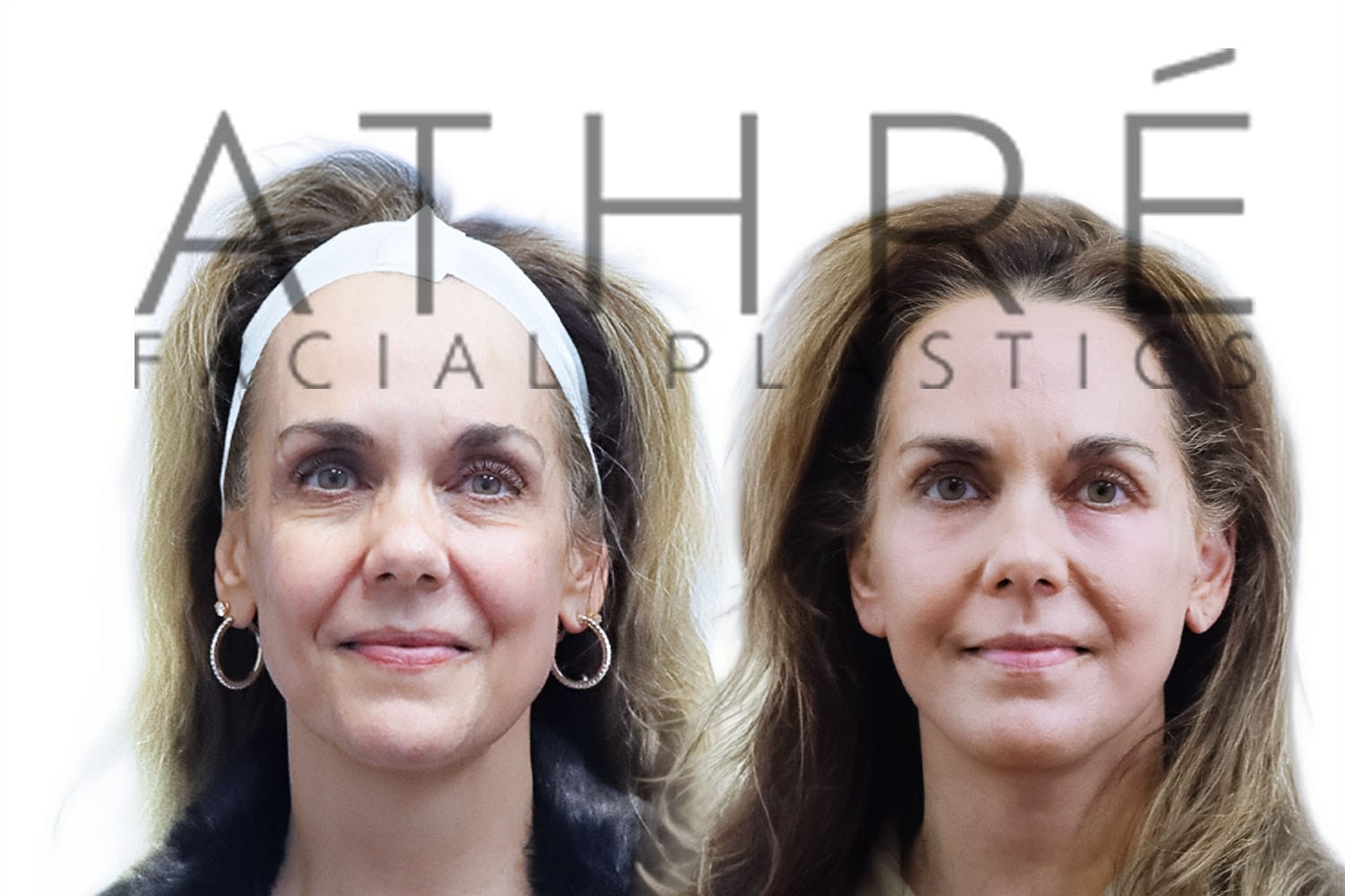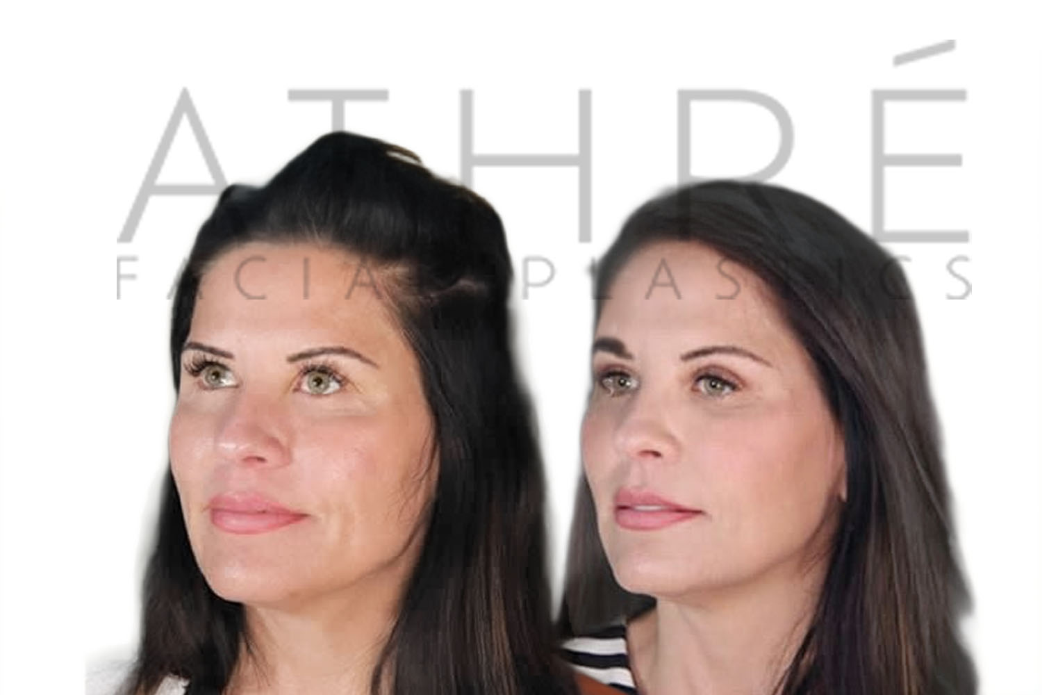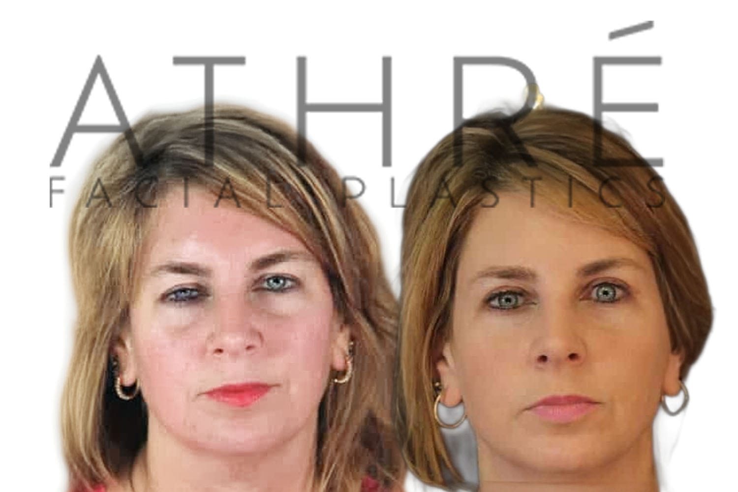 Female patient after upper blepharoplasty, lower transconjuctival blepharoplasty, midface lift, and autologous fat transfer.