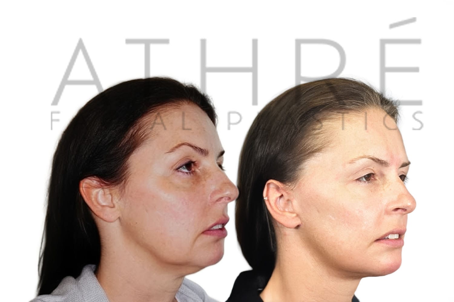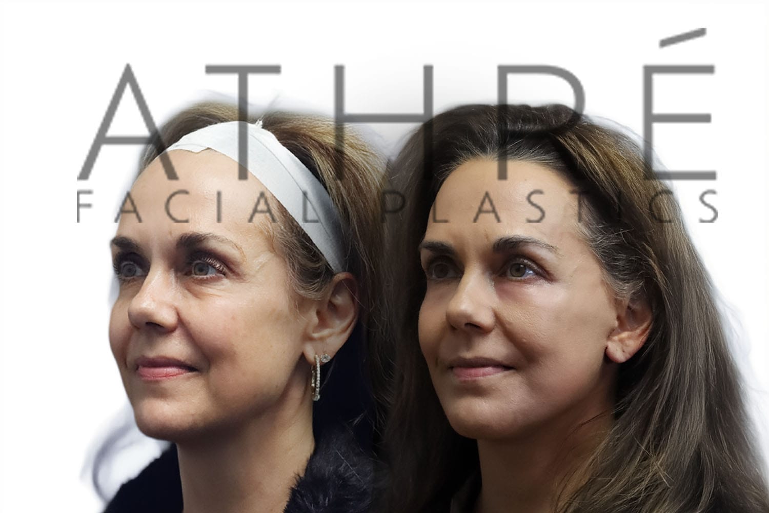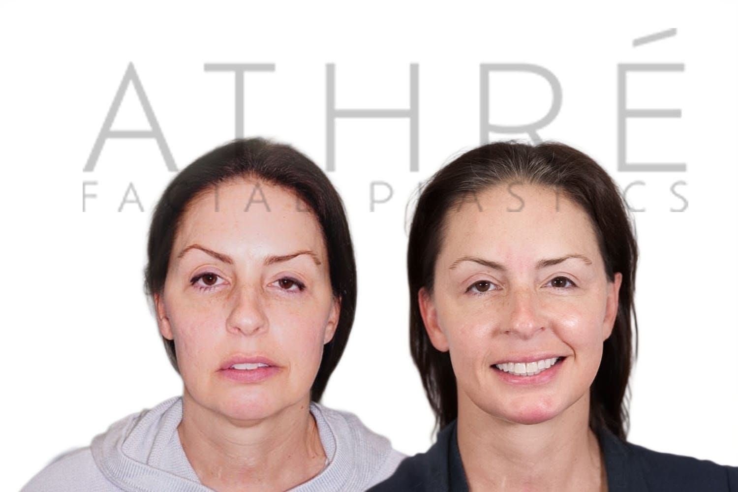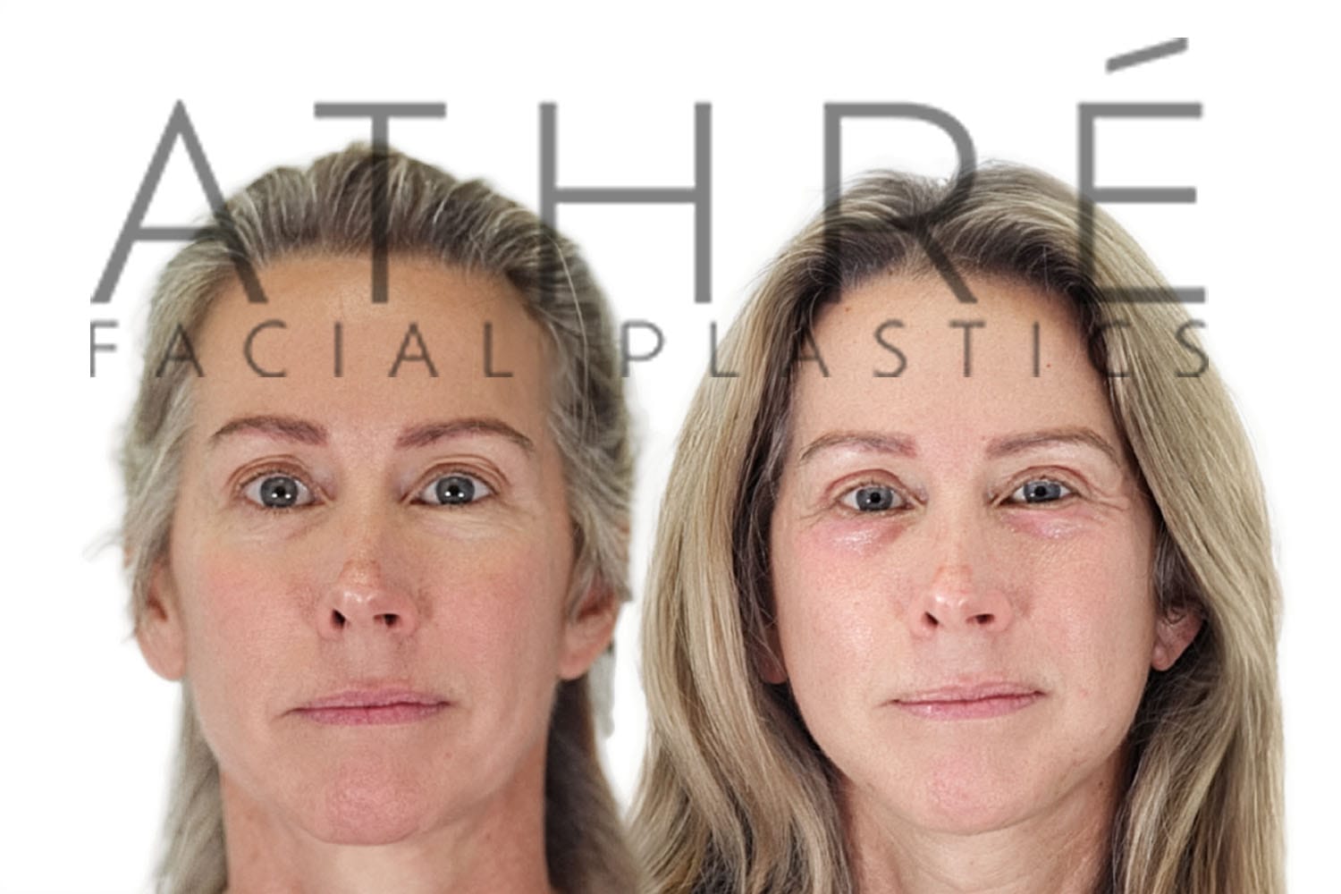 Female patient after upper blepharoplasty, lower transconjuctival blepharoplasty, midface lift, and autologous fat transfer.