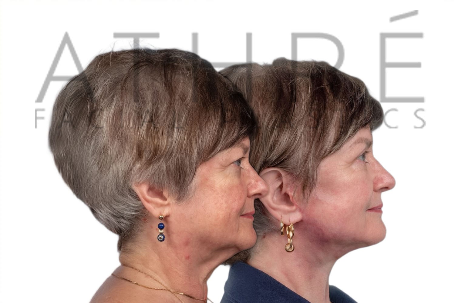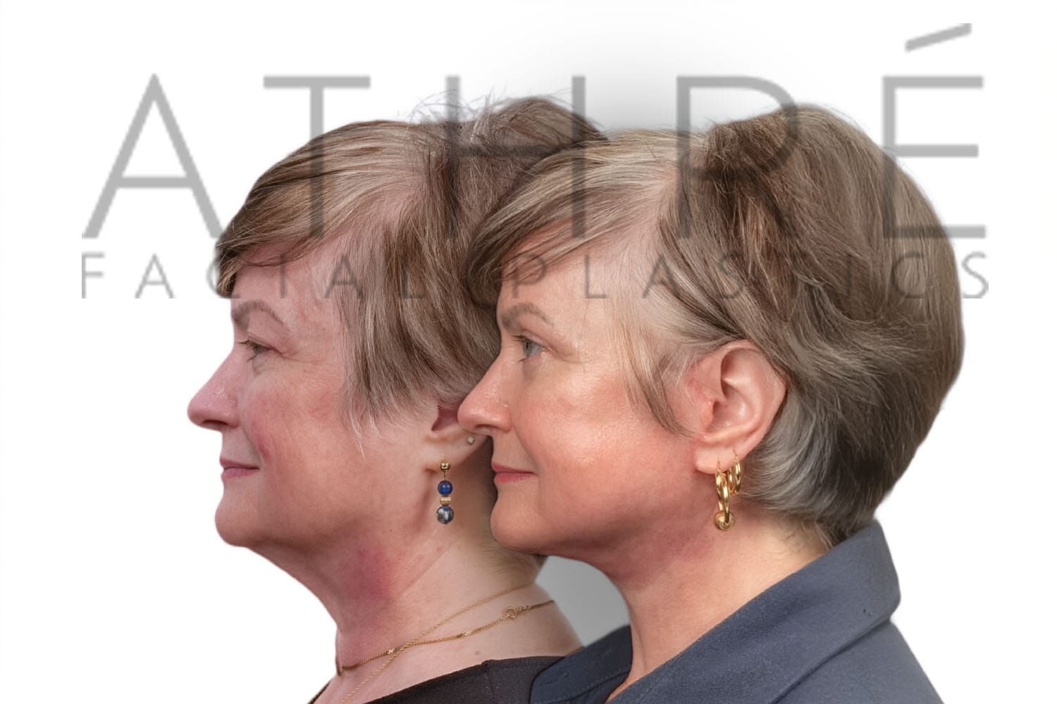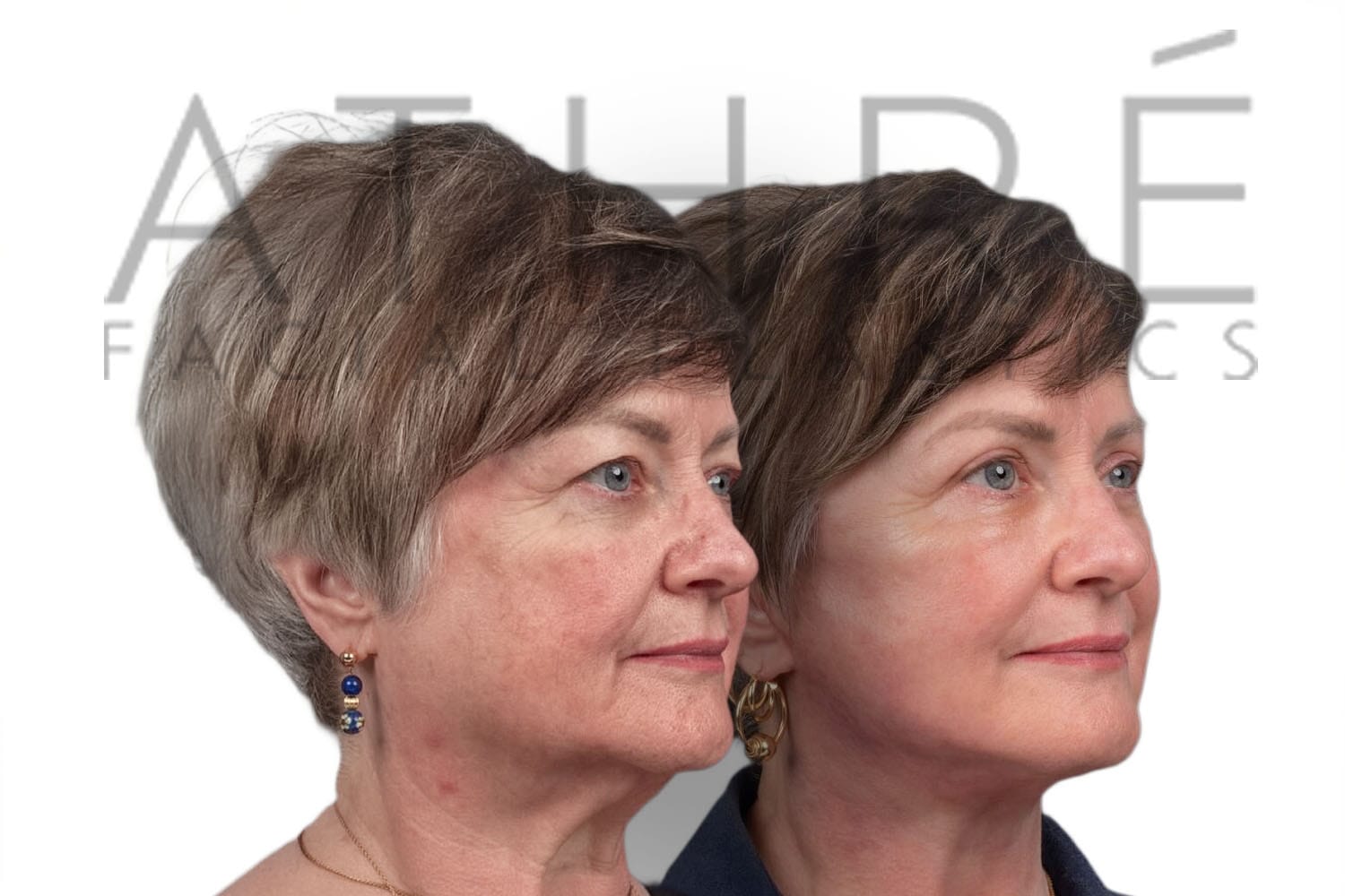 Female patient after deep plane facelift, deep neck lift, upper blepharoplasty, and autologous fat transfer. Local anesthesia with oral sedation.