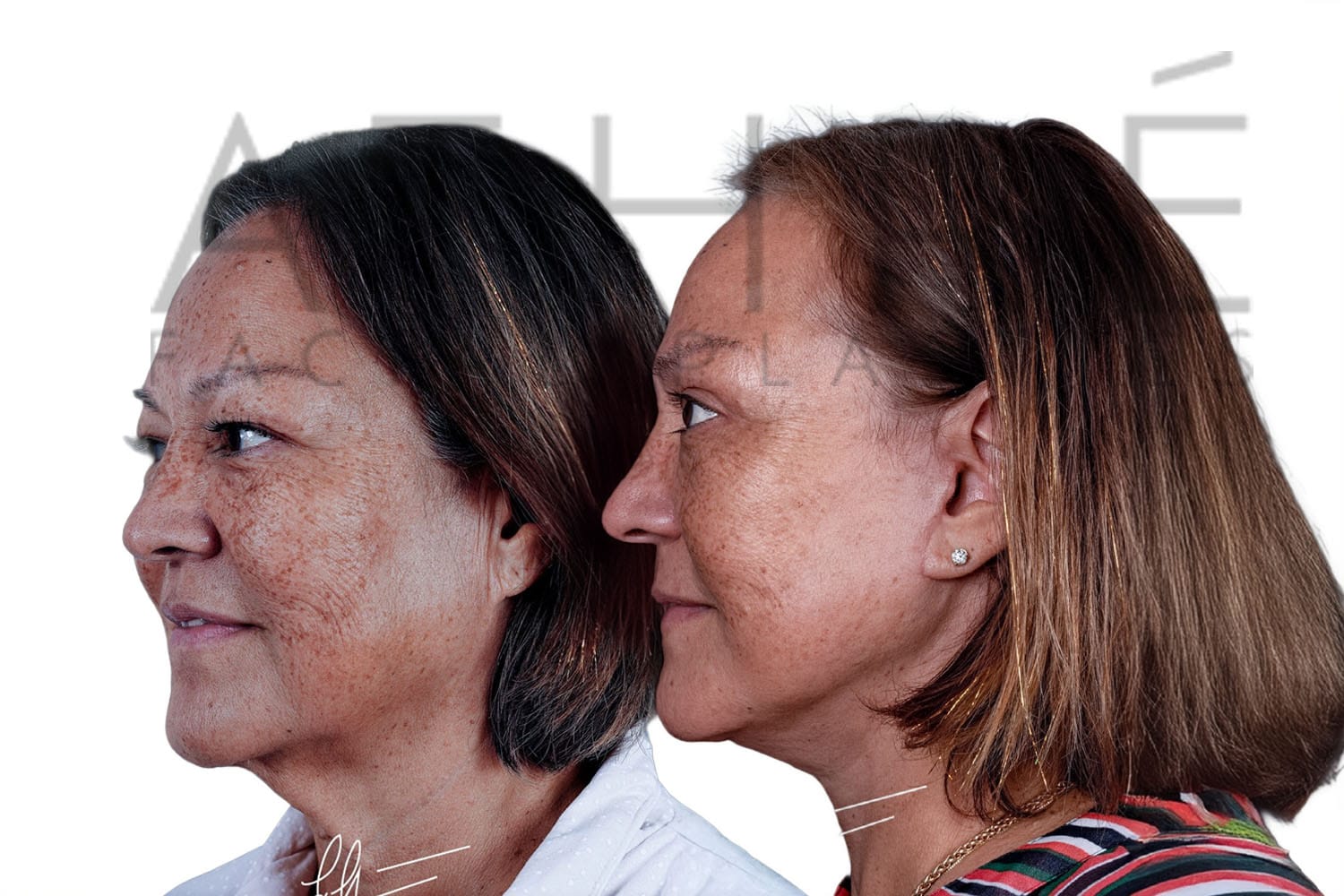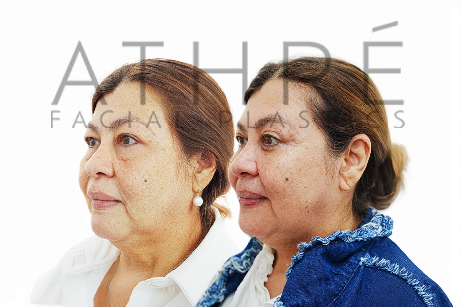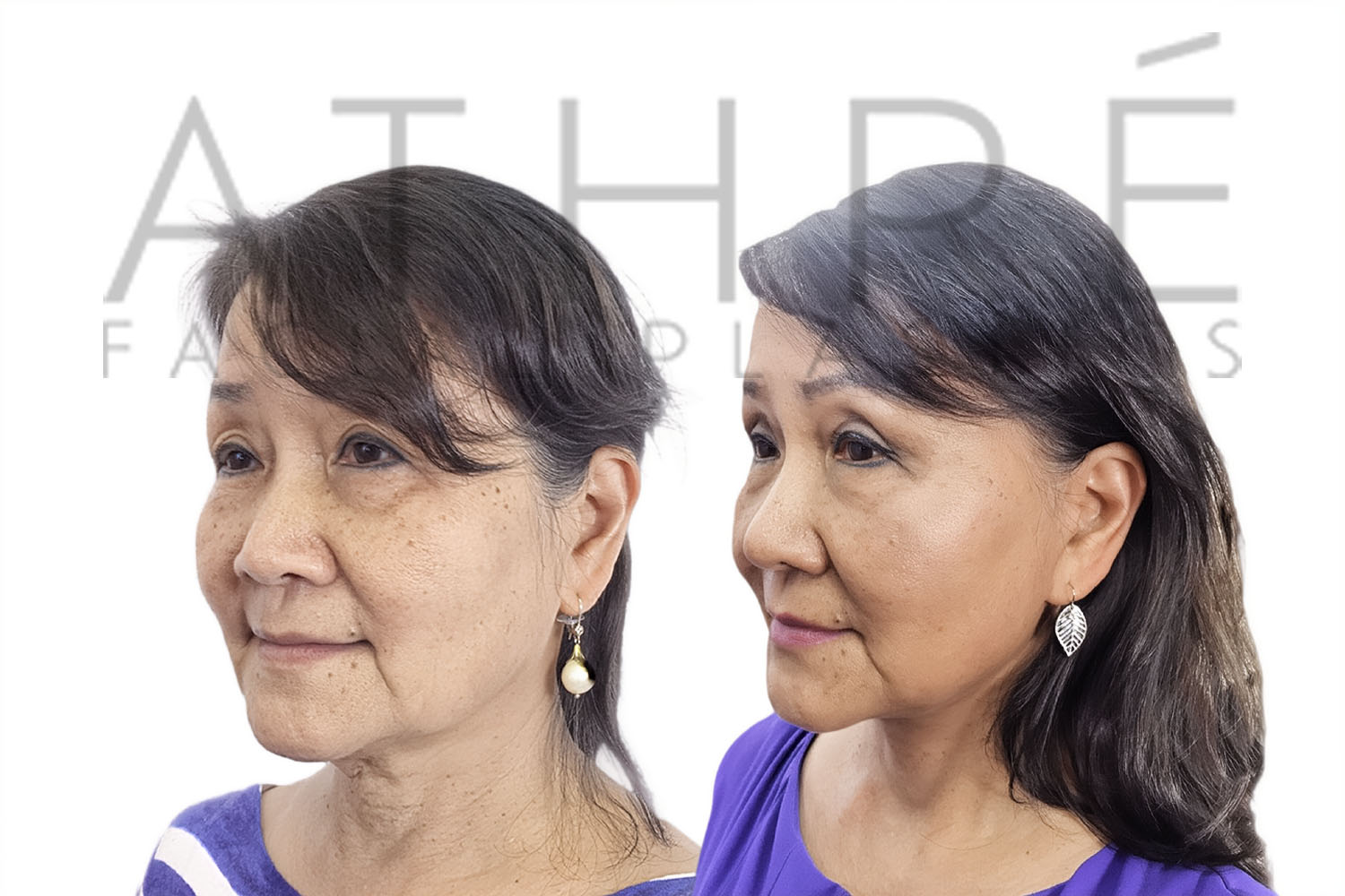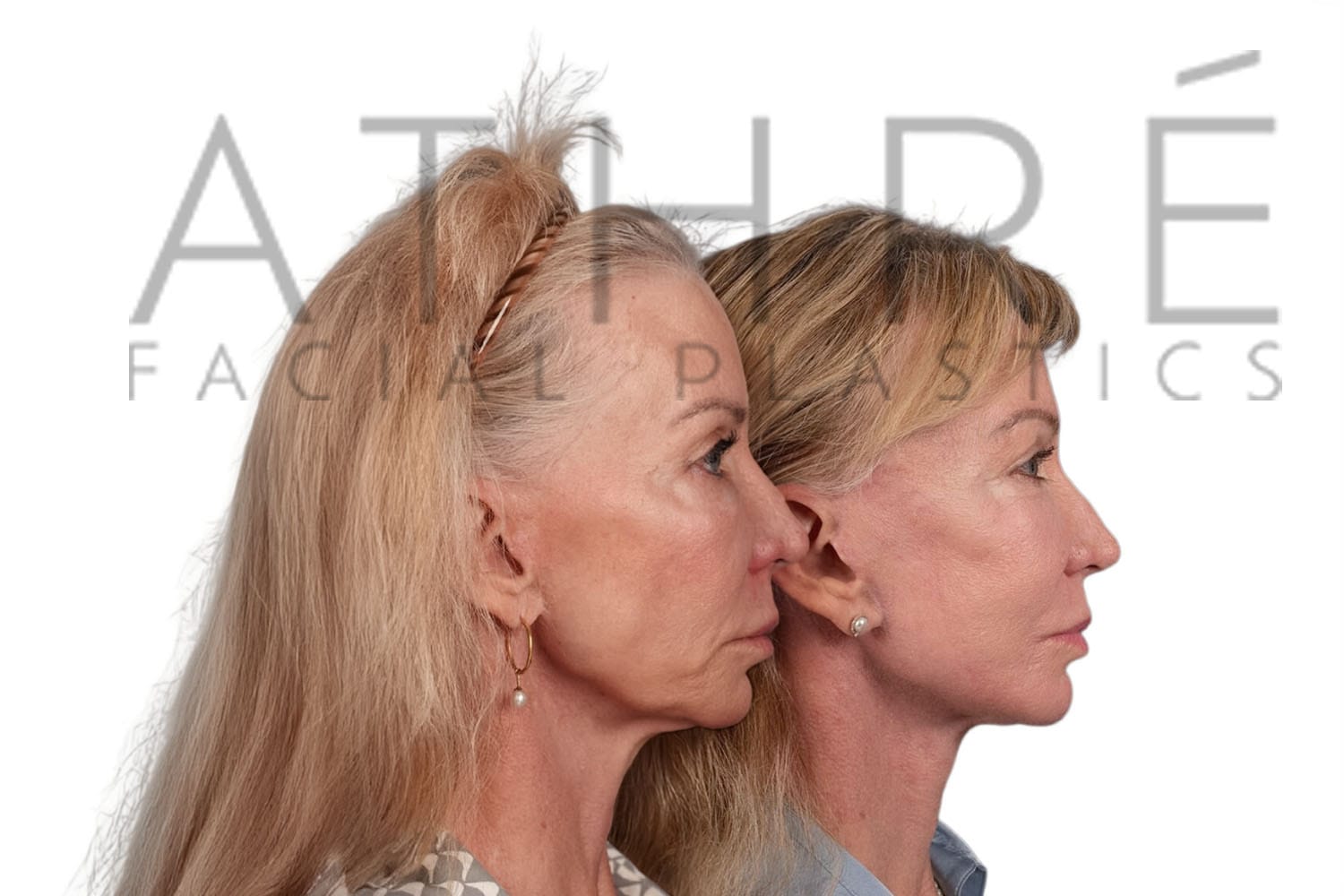 Female patient after deep plane facelift, deep neck lift, upper blepharoplasty, and autologous fat transfer. Local anesthesia with oral sedation.