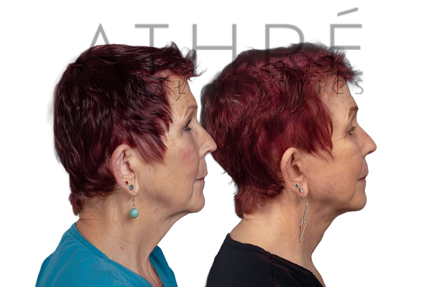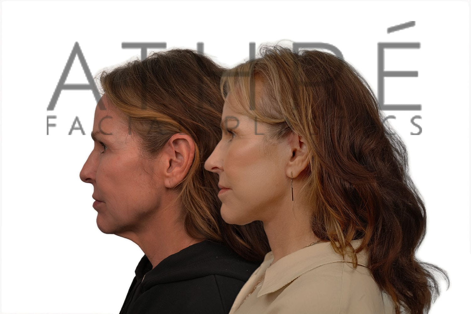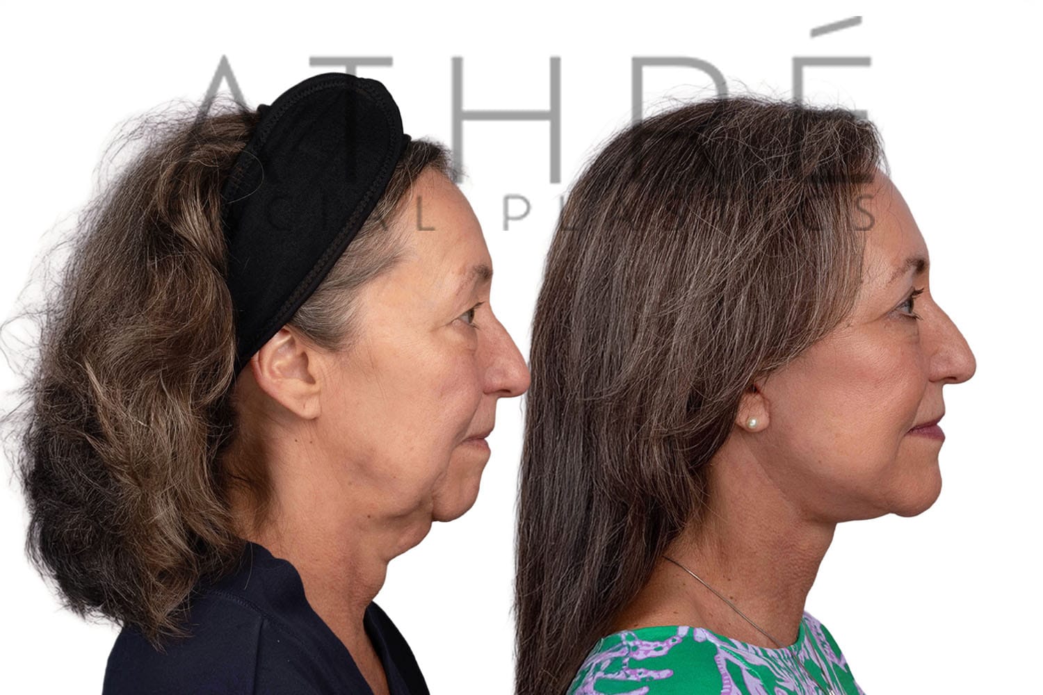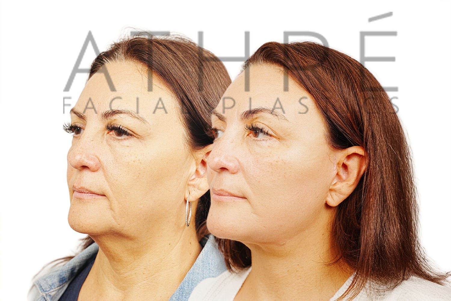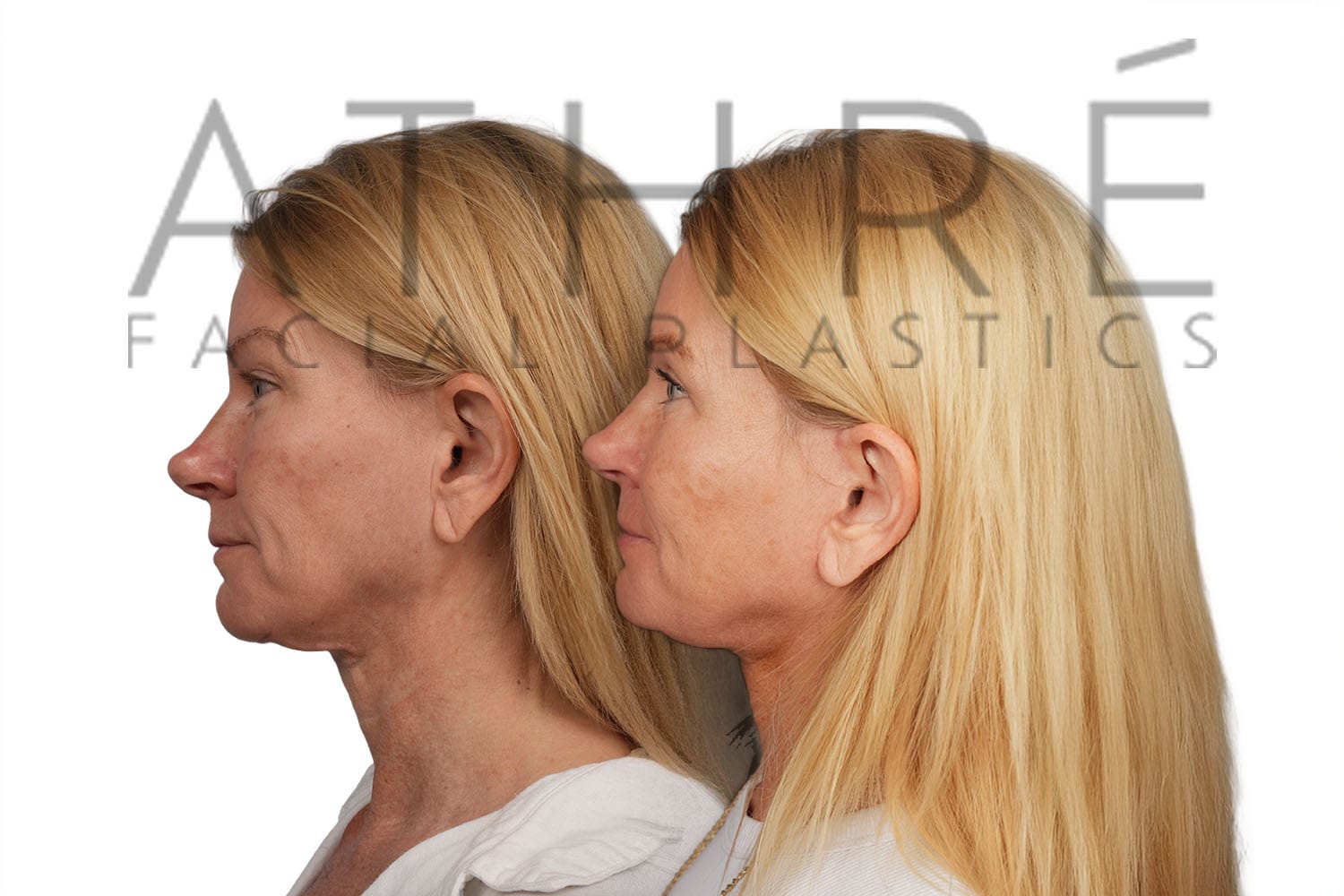 Female after deep plane facelift (4D Facelift ™), autologous fat transfer to face, deep neck lift, stem cell nanofat treatment, chemical peel full face.