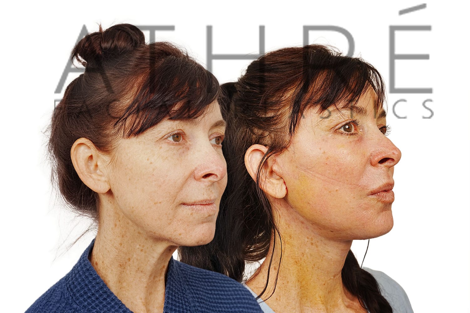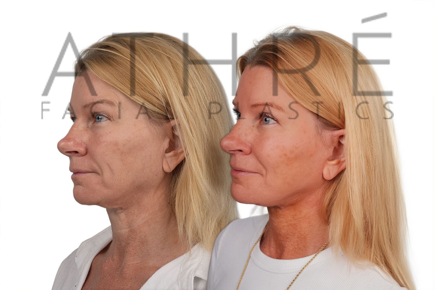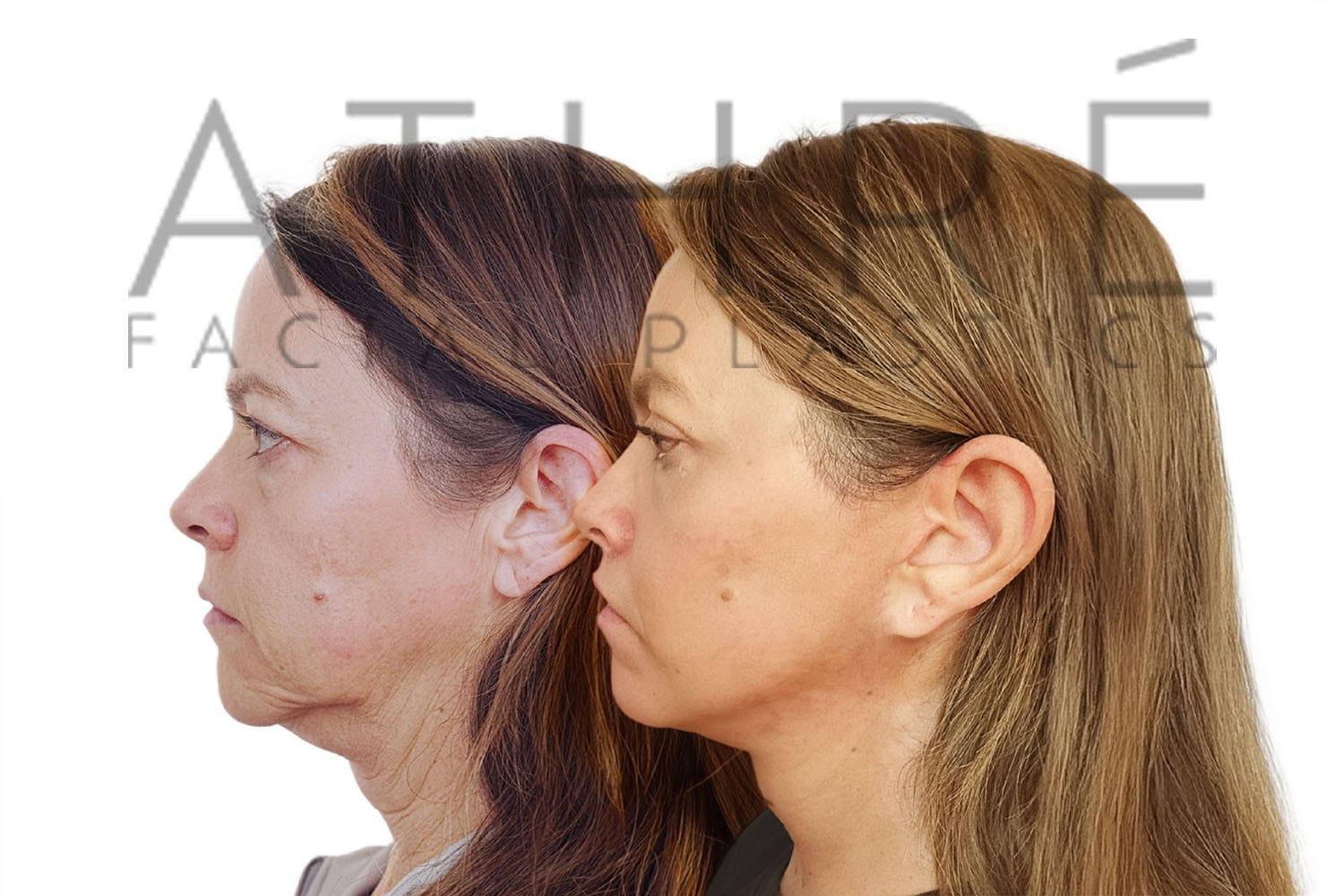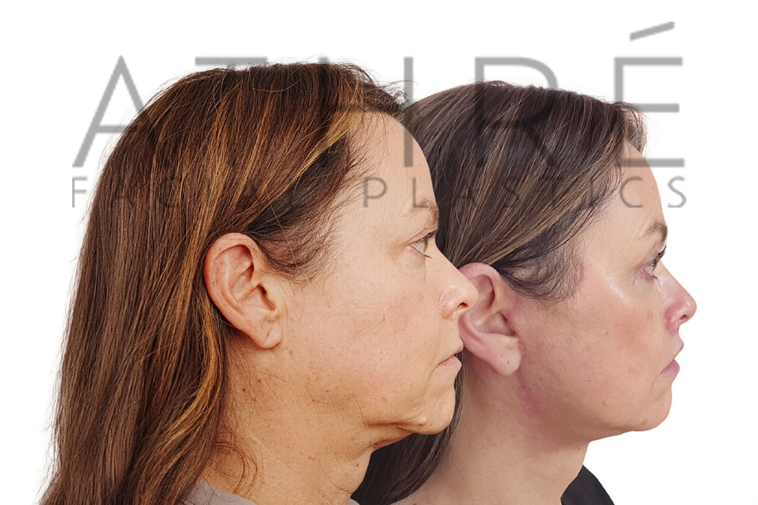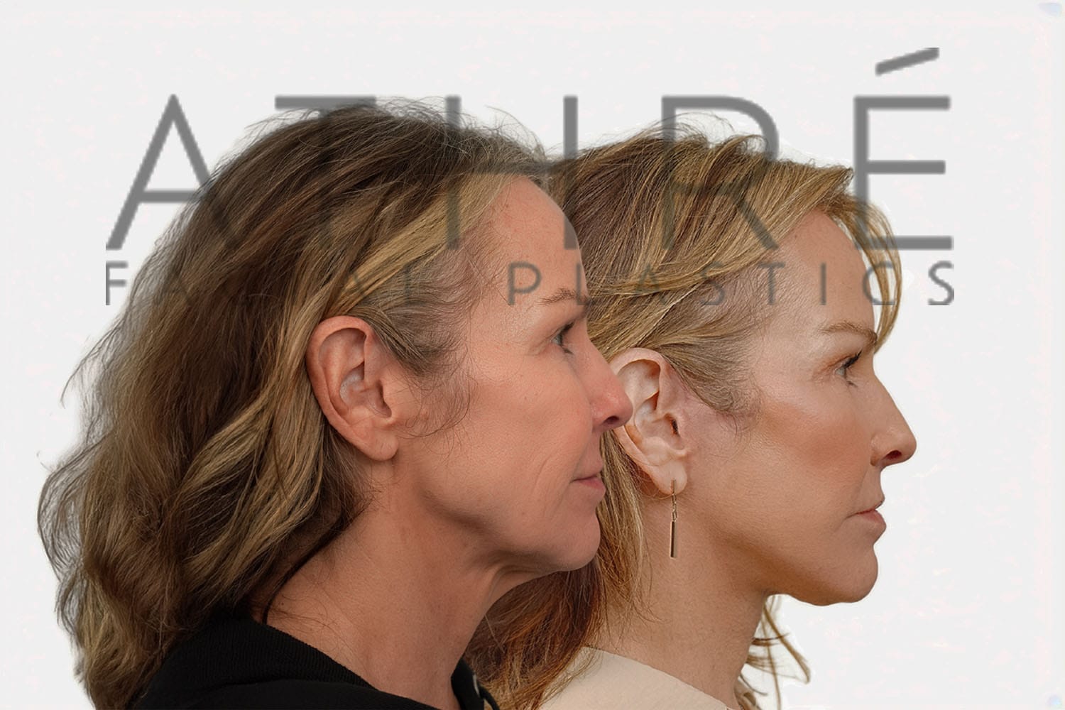 Female after deep plane facelift (4D Facelift ™), autologous fat transfer to face, deep neck lift, stem cell nanofat treatment, chemical peel full face.
