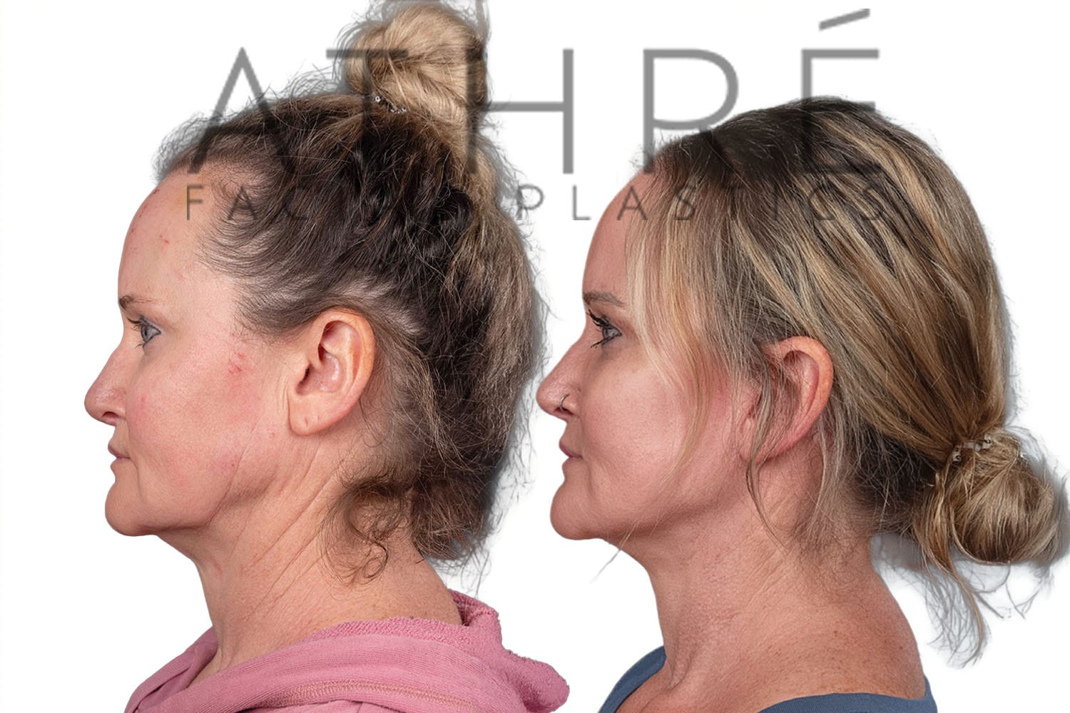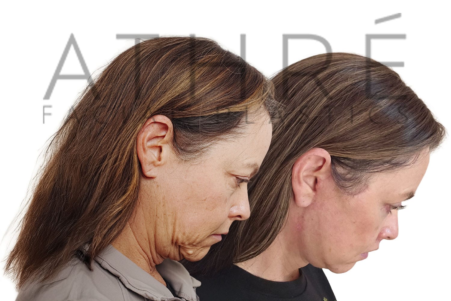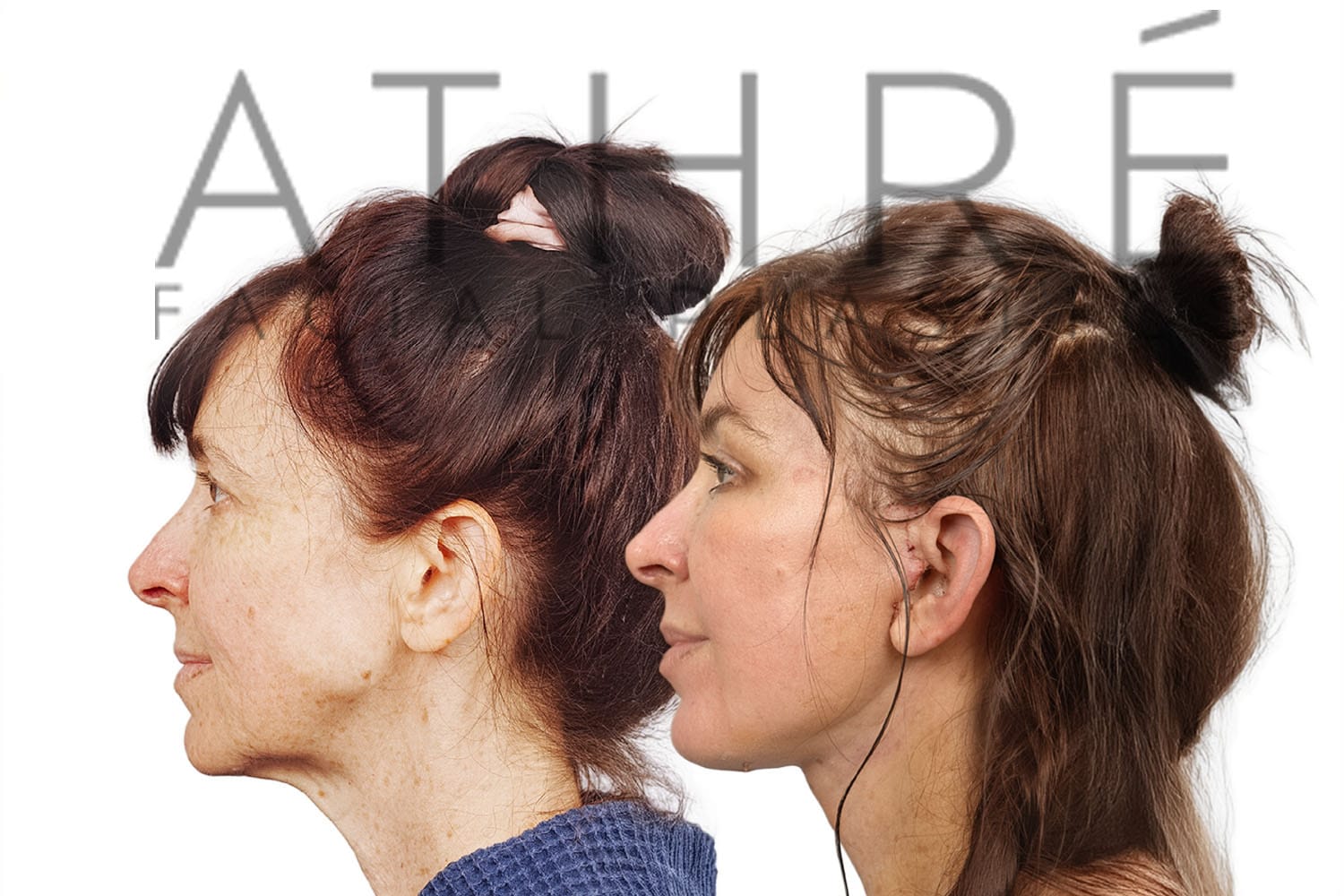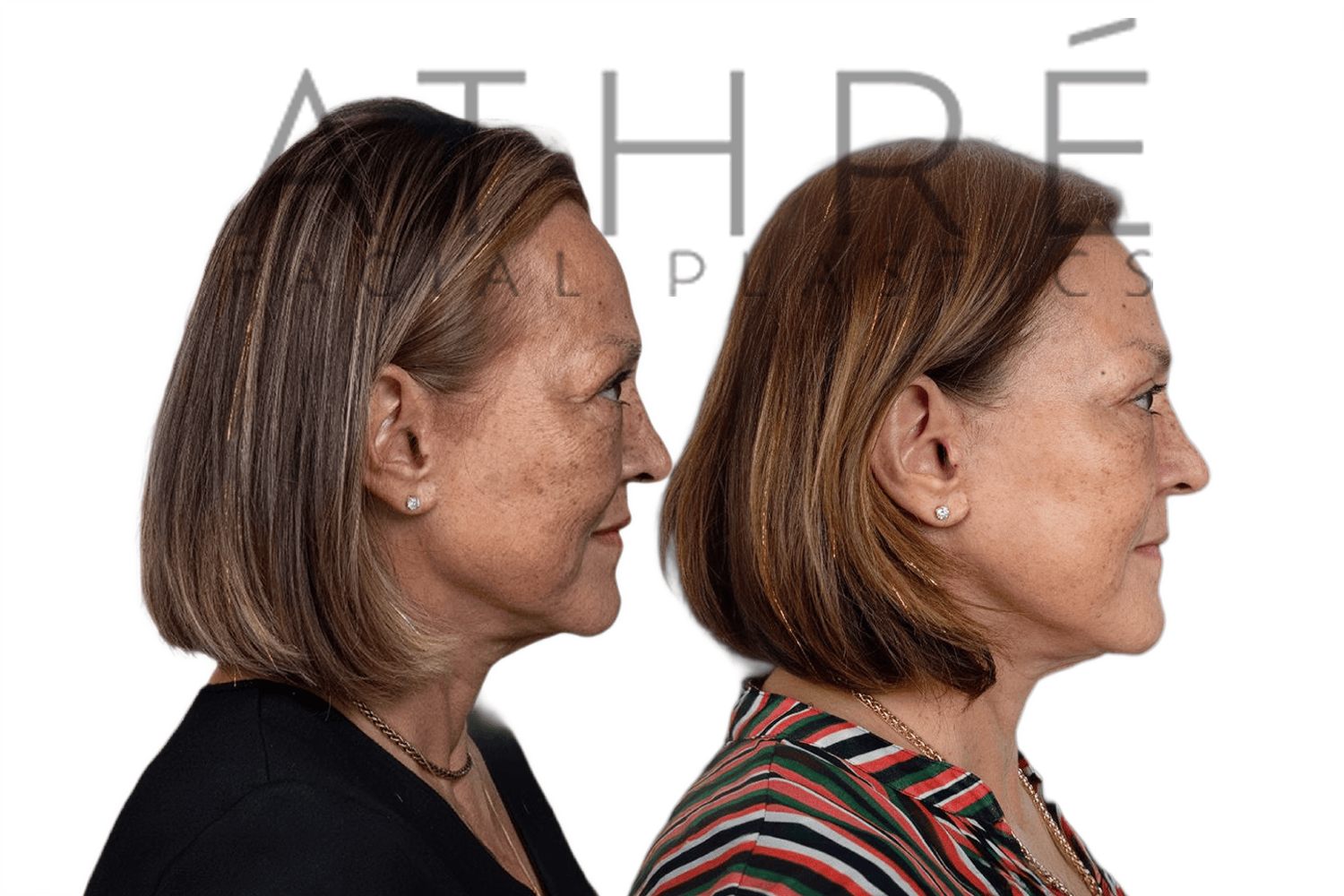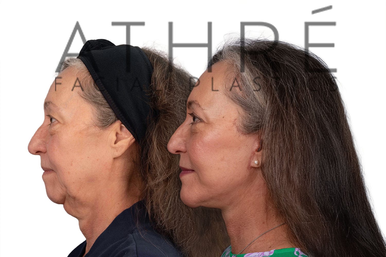 Female after deep plane facelift (4D Facelift ™), autologous fat transfer to face, deep neck lift, stem cell nanofat treatment, chemical peel full face.