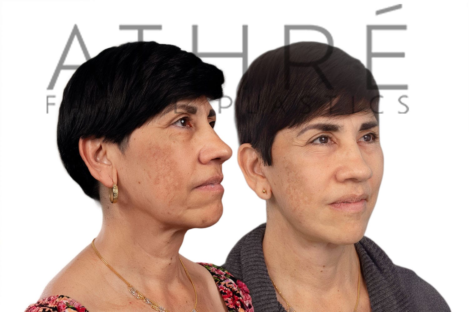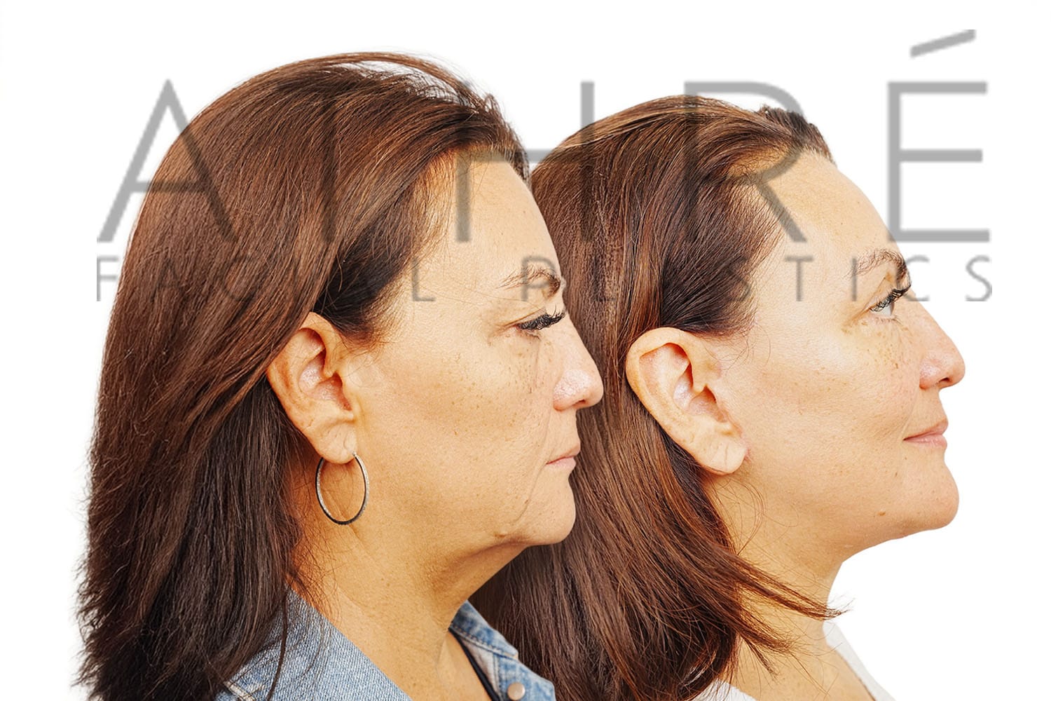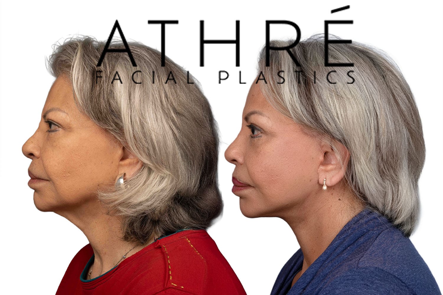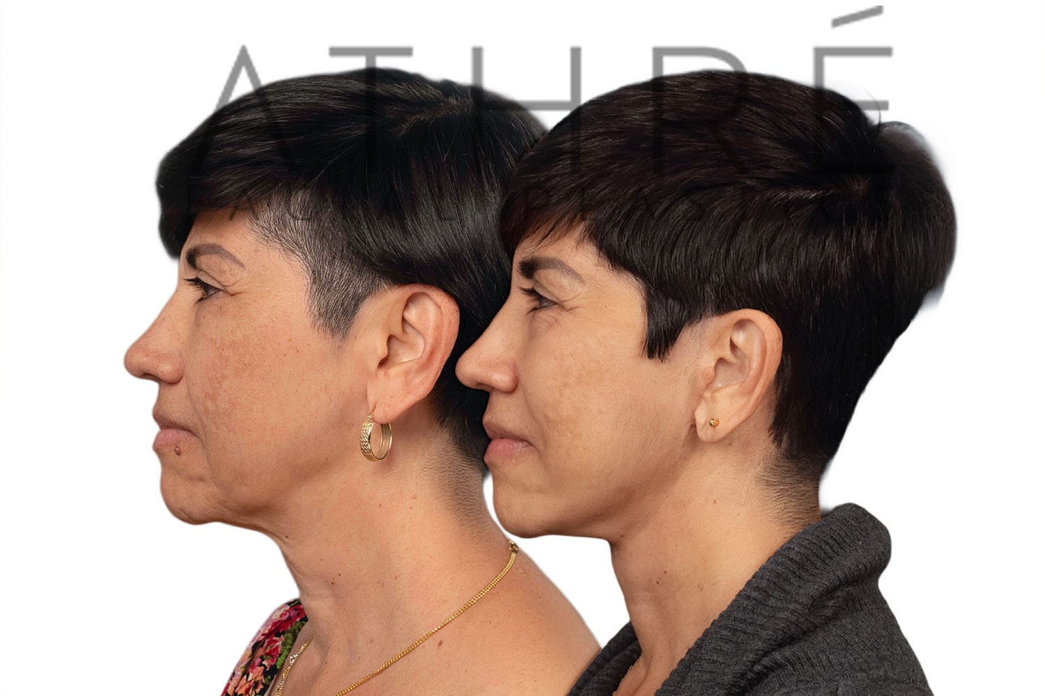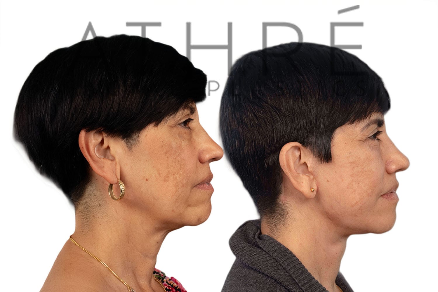 Female after deep plane facelift (4D Facelift ™), autologous fat transfer to face, deep neck lift, stem cell nanofat treatment, chemical peel full face.