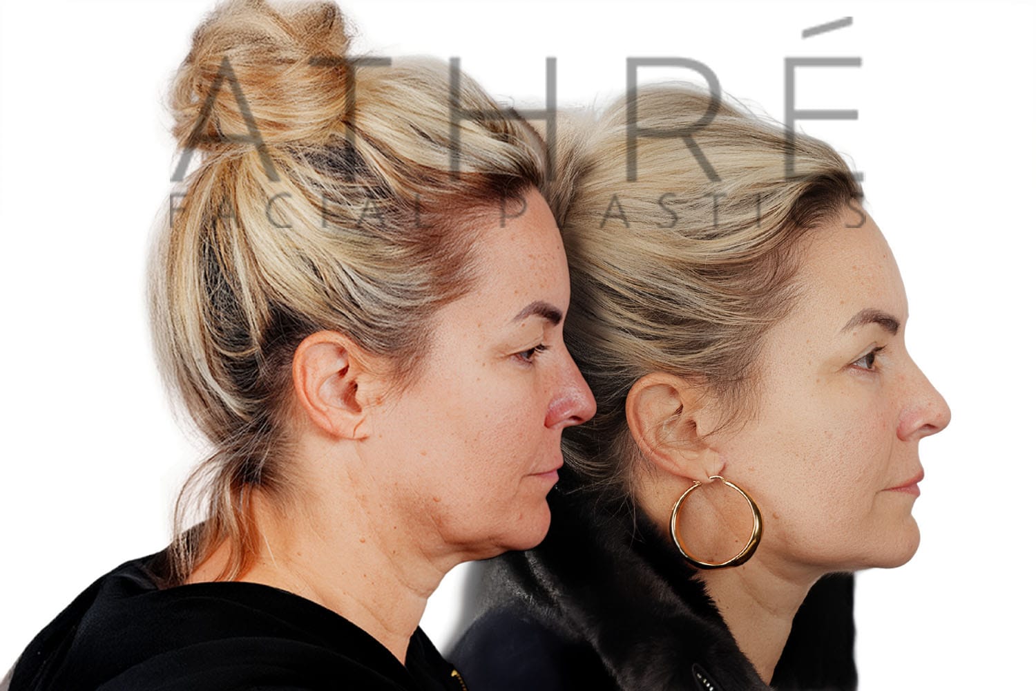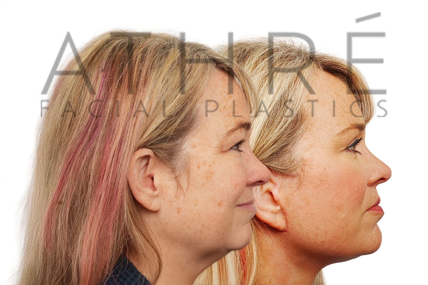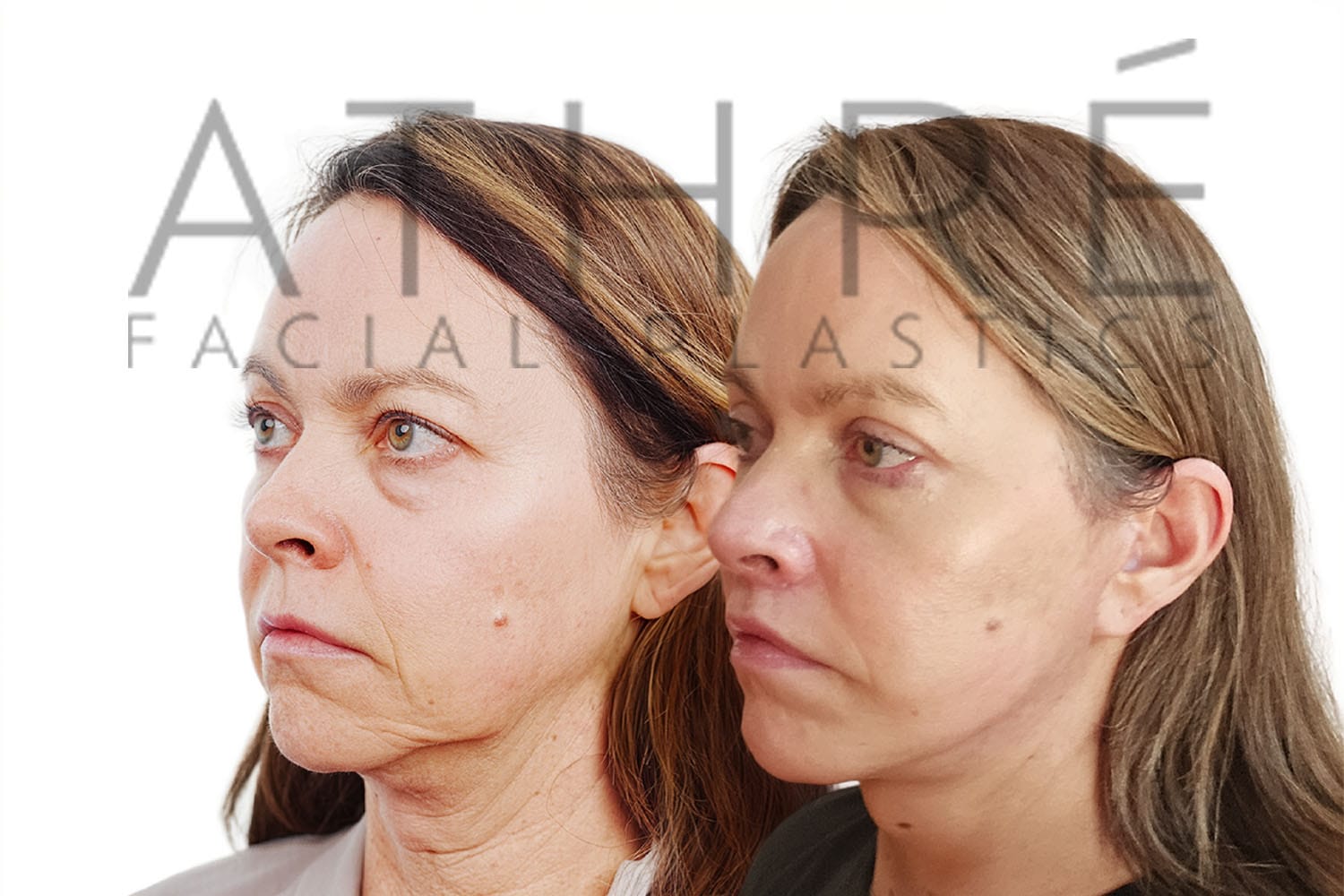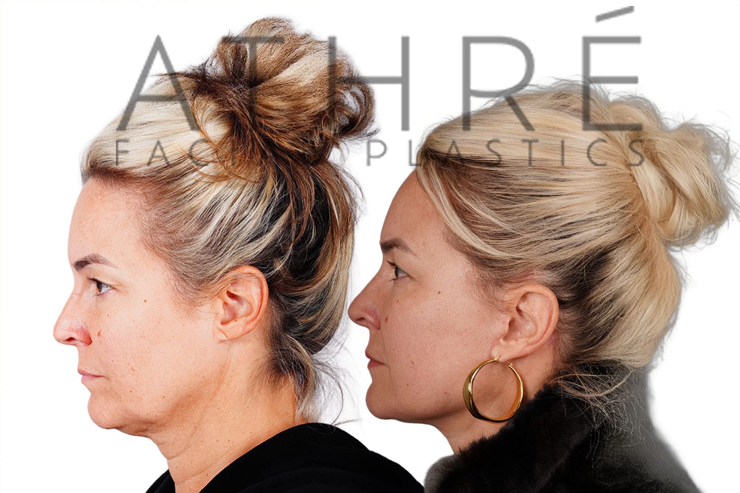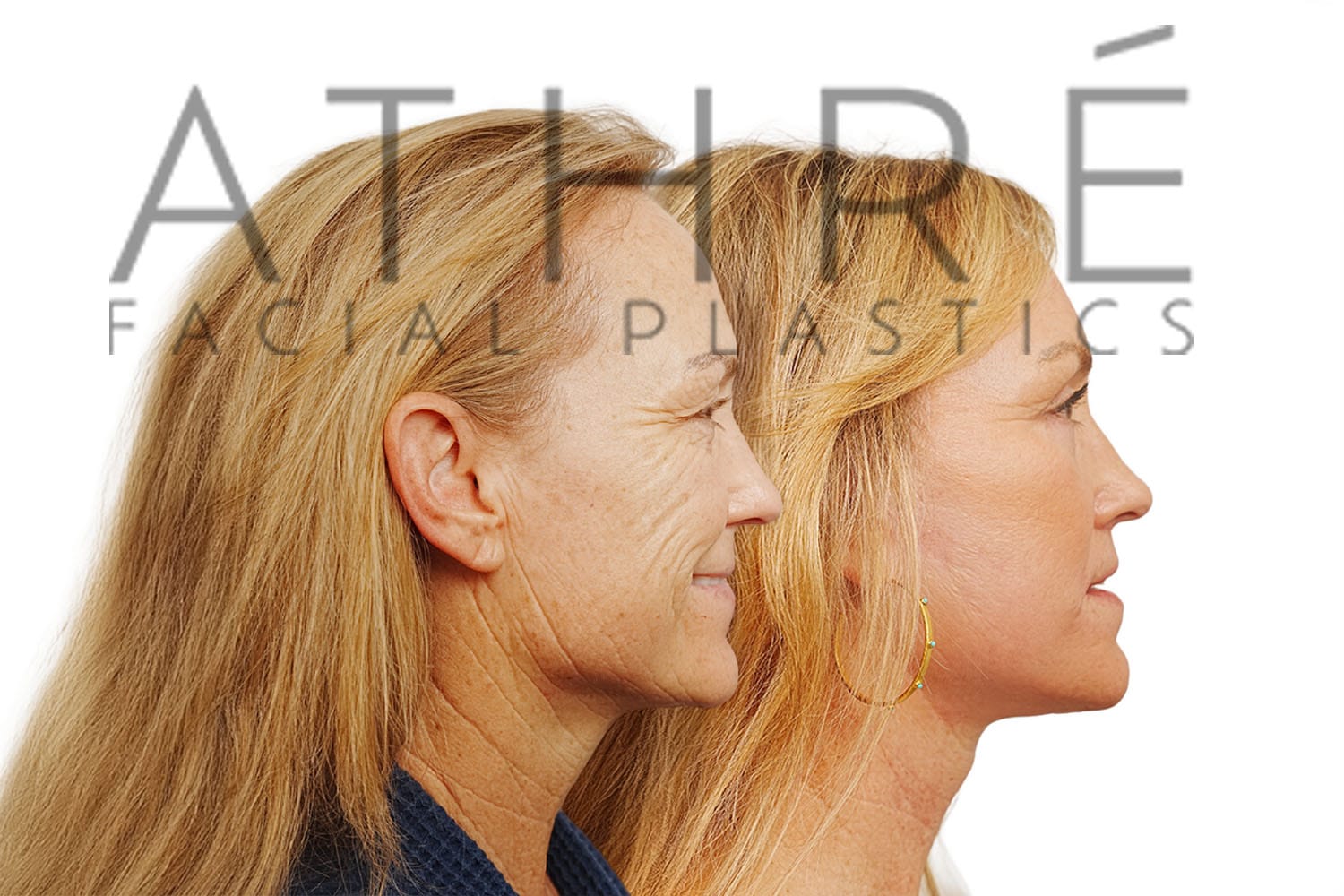 Female after deep plane facelift (4D Facelift ™), autologous fat transfer to face, deep neck lift, stem cell nanofat treatment, chemical peel full face.