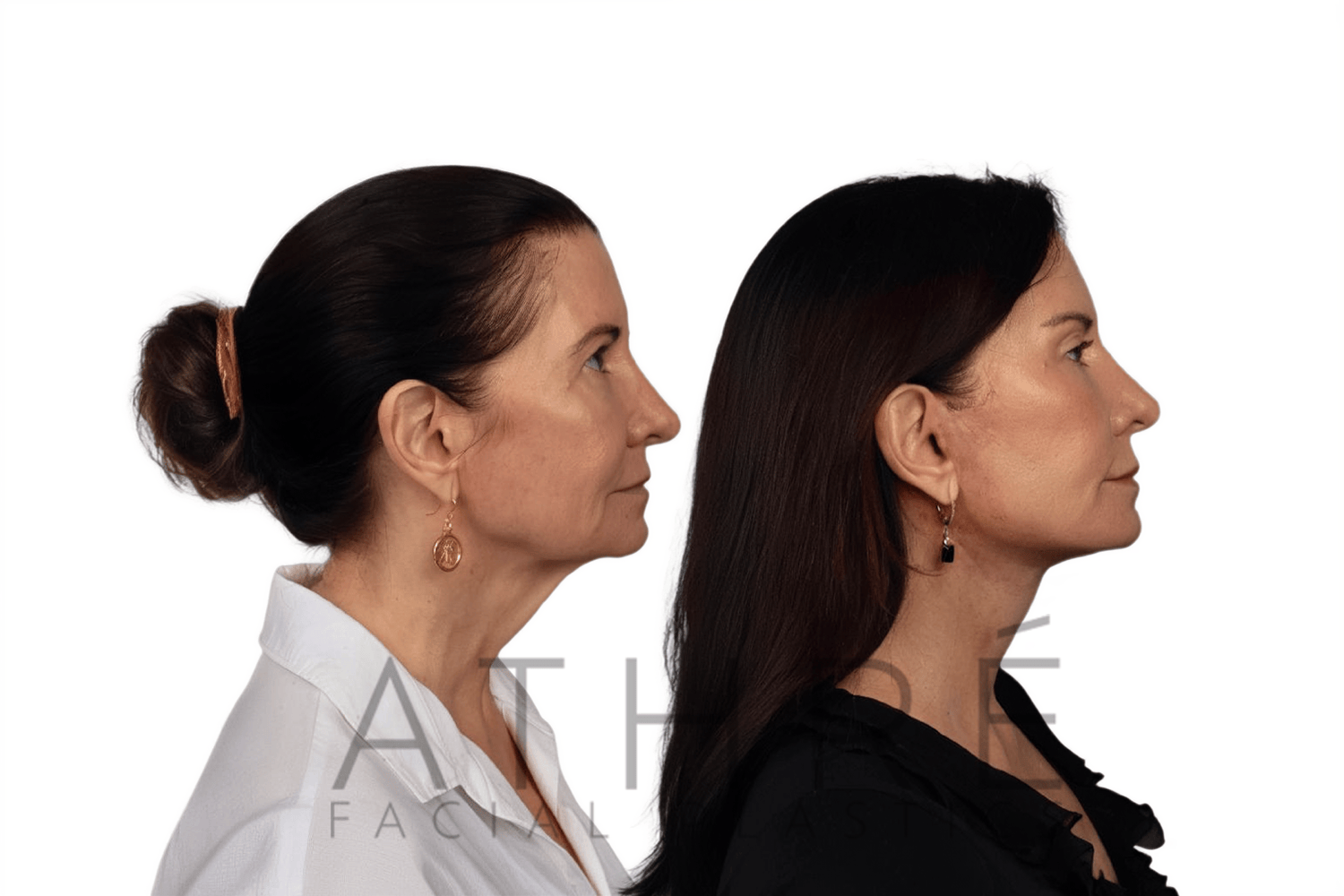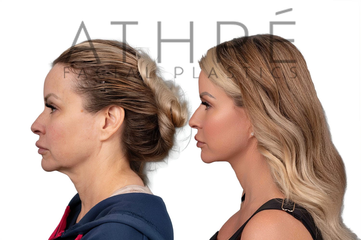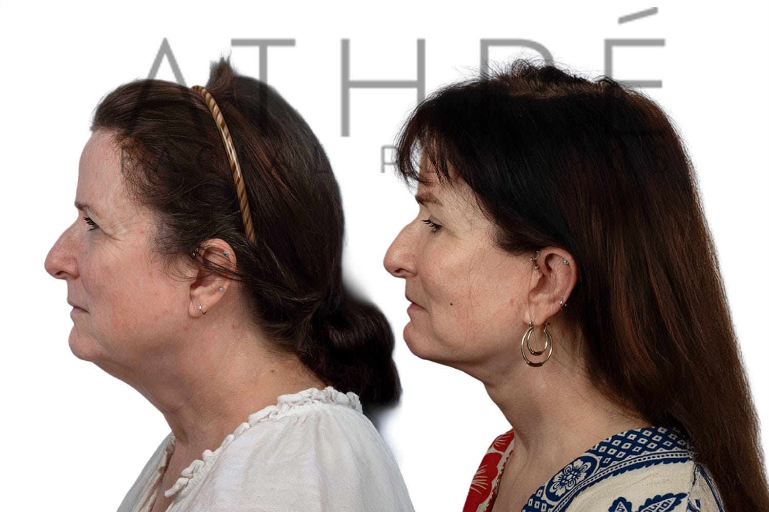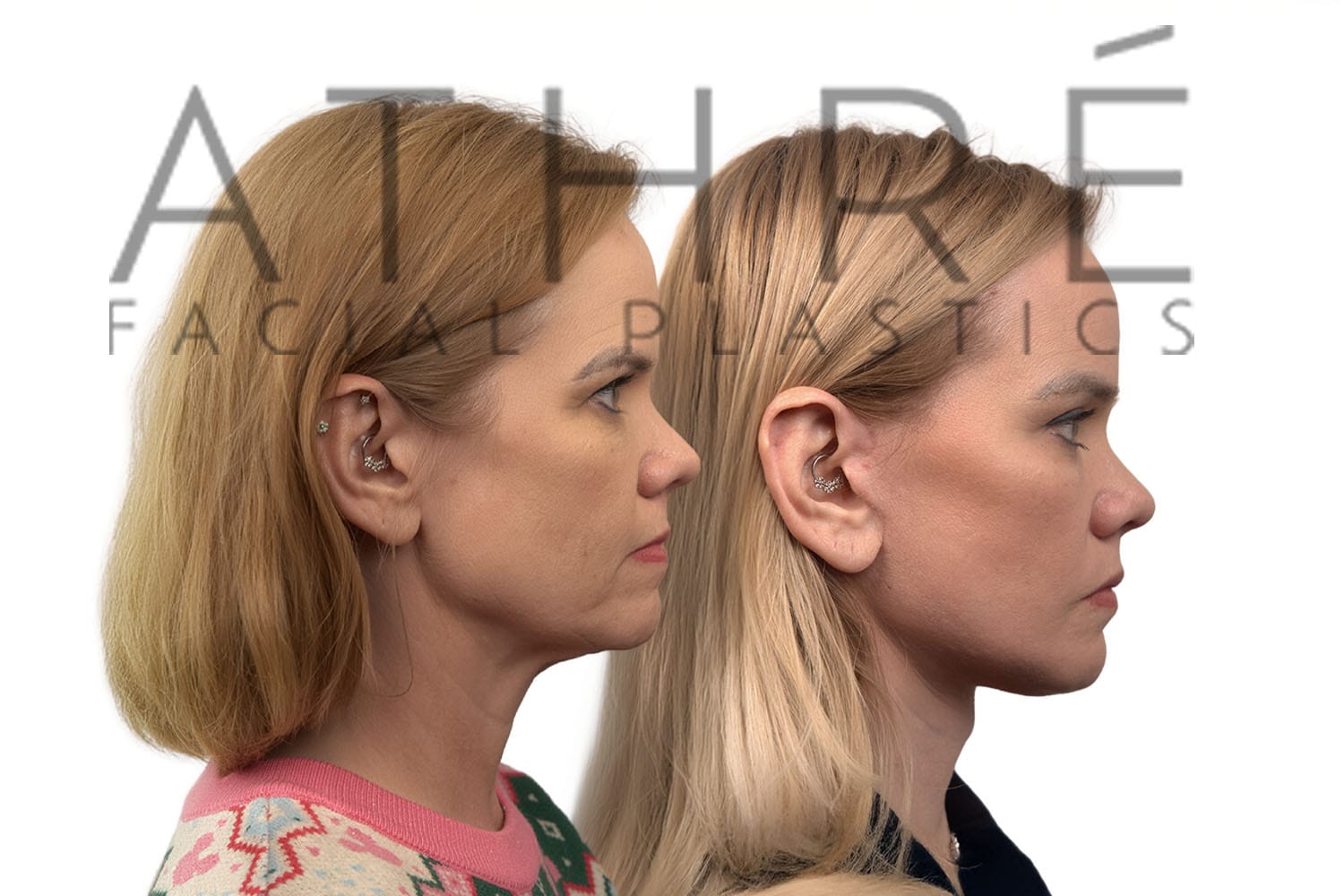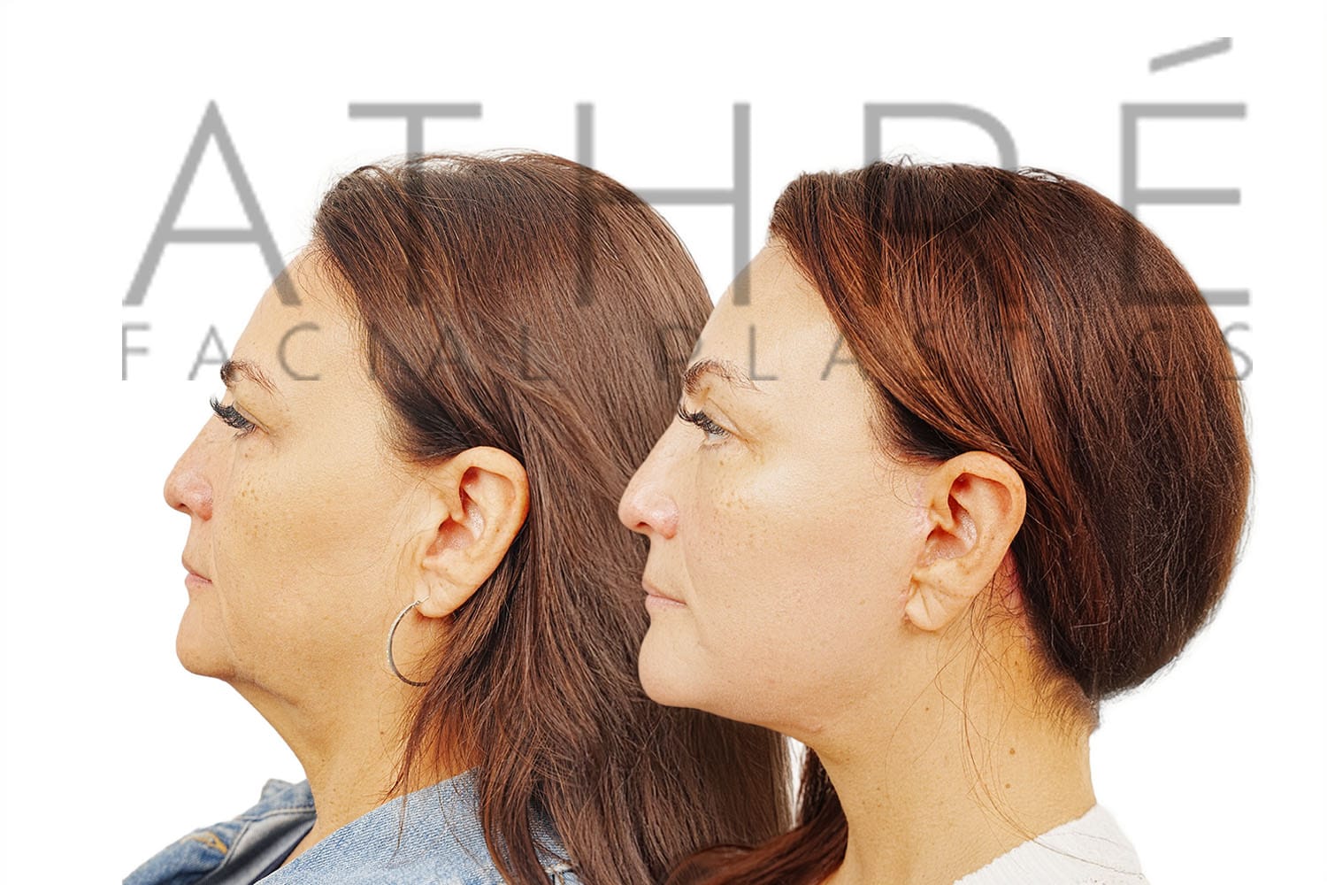 Female after deep plane facelift (4D Facelift ™), autologous fat transfer to face, deep neck lift, stem cell nanofat treatment, chemical peel full face.