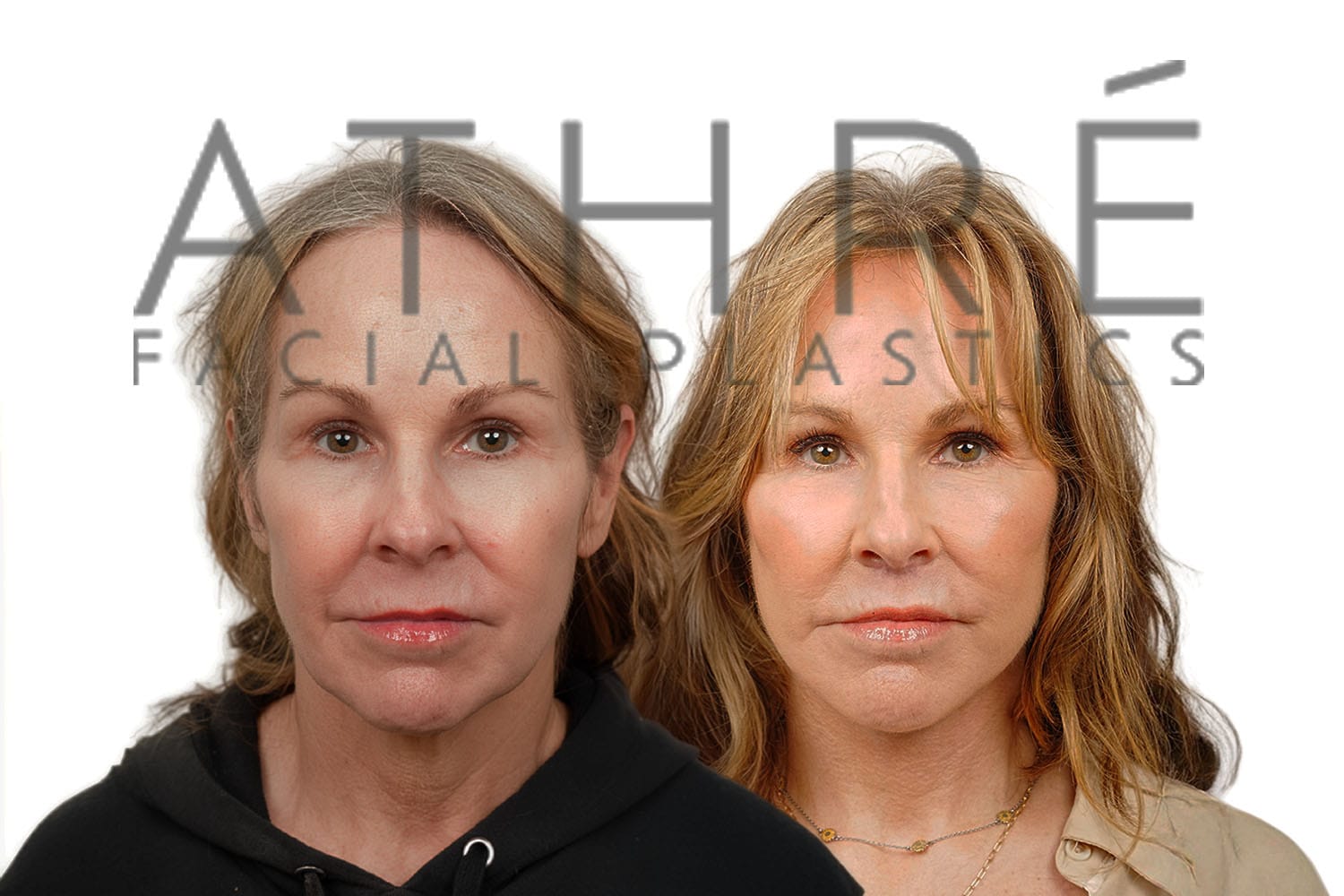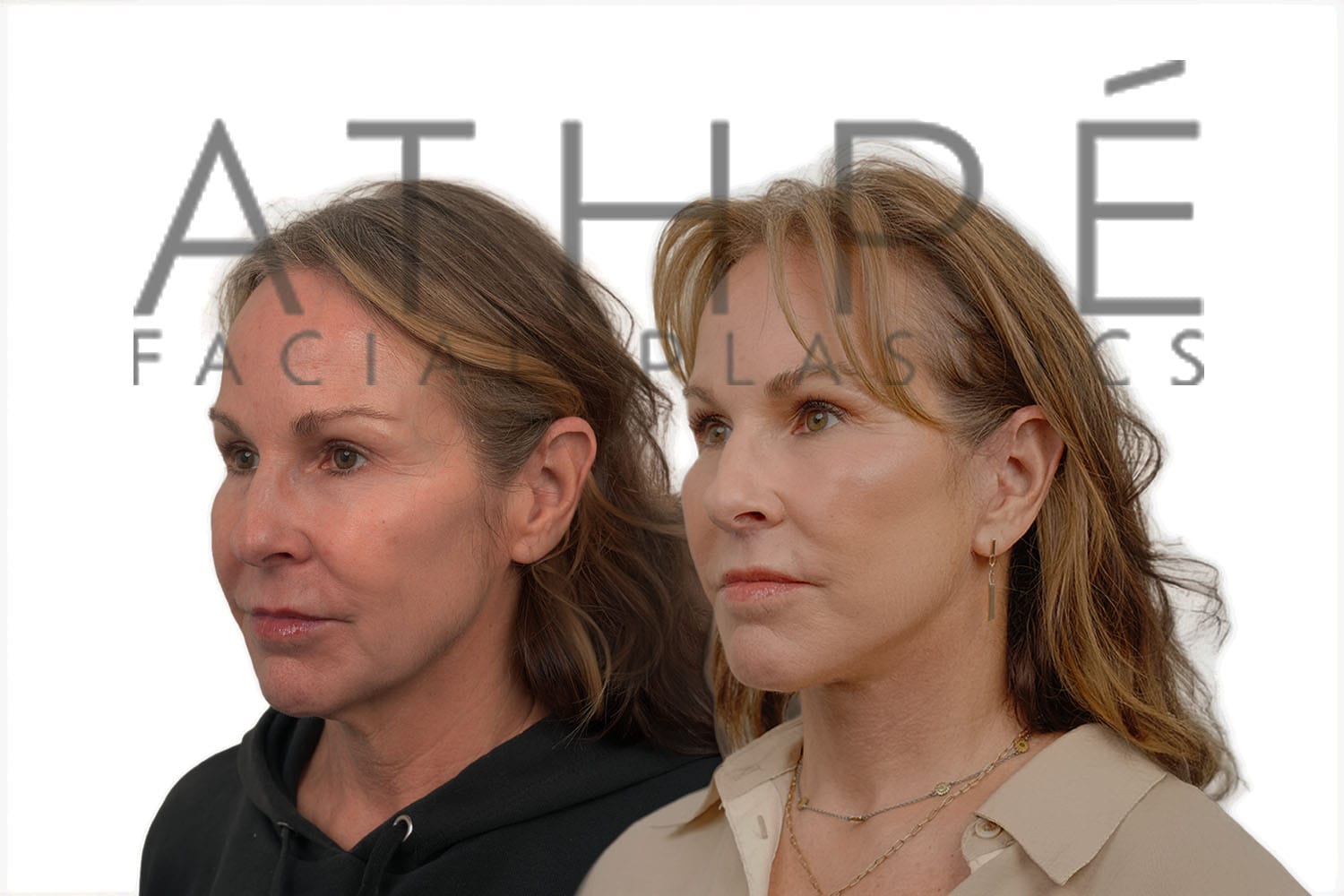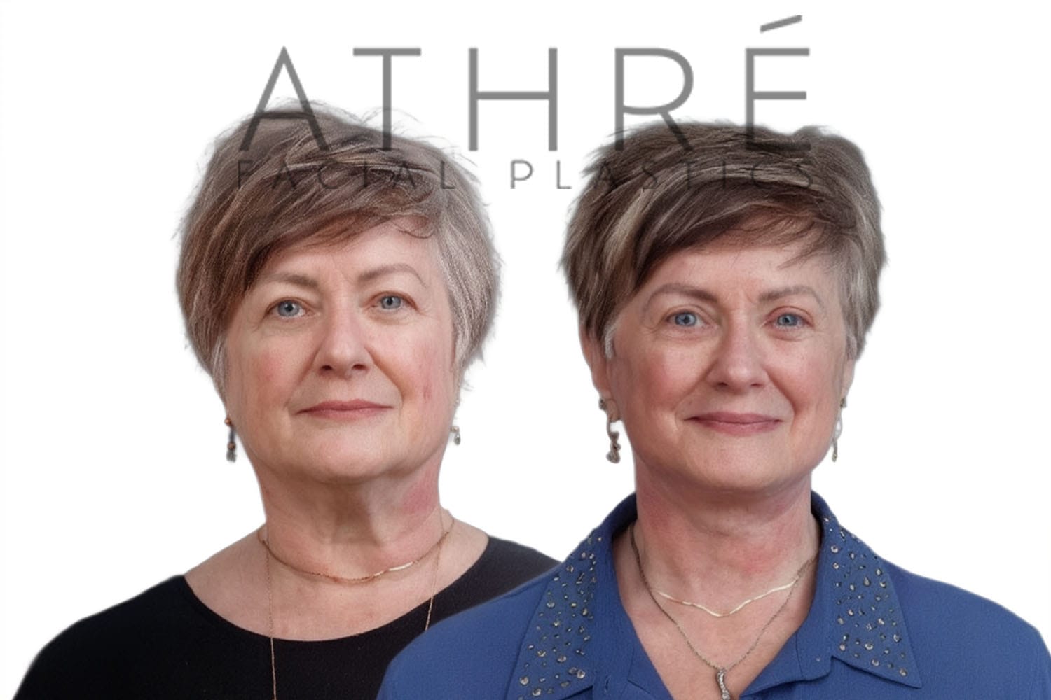 56 year old female after deep plane facelift (4D Facelift™), deep neck lift, autologous fat transfer to face, stemcell nanofat treatment to face, upper blepharoplasty, lower blepharoplasty.