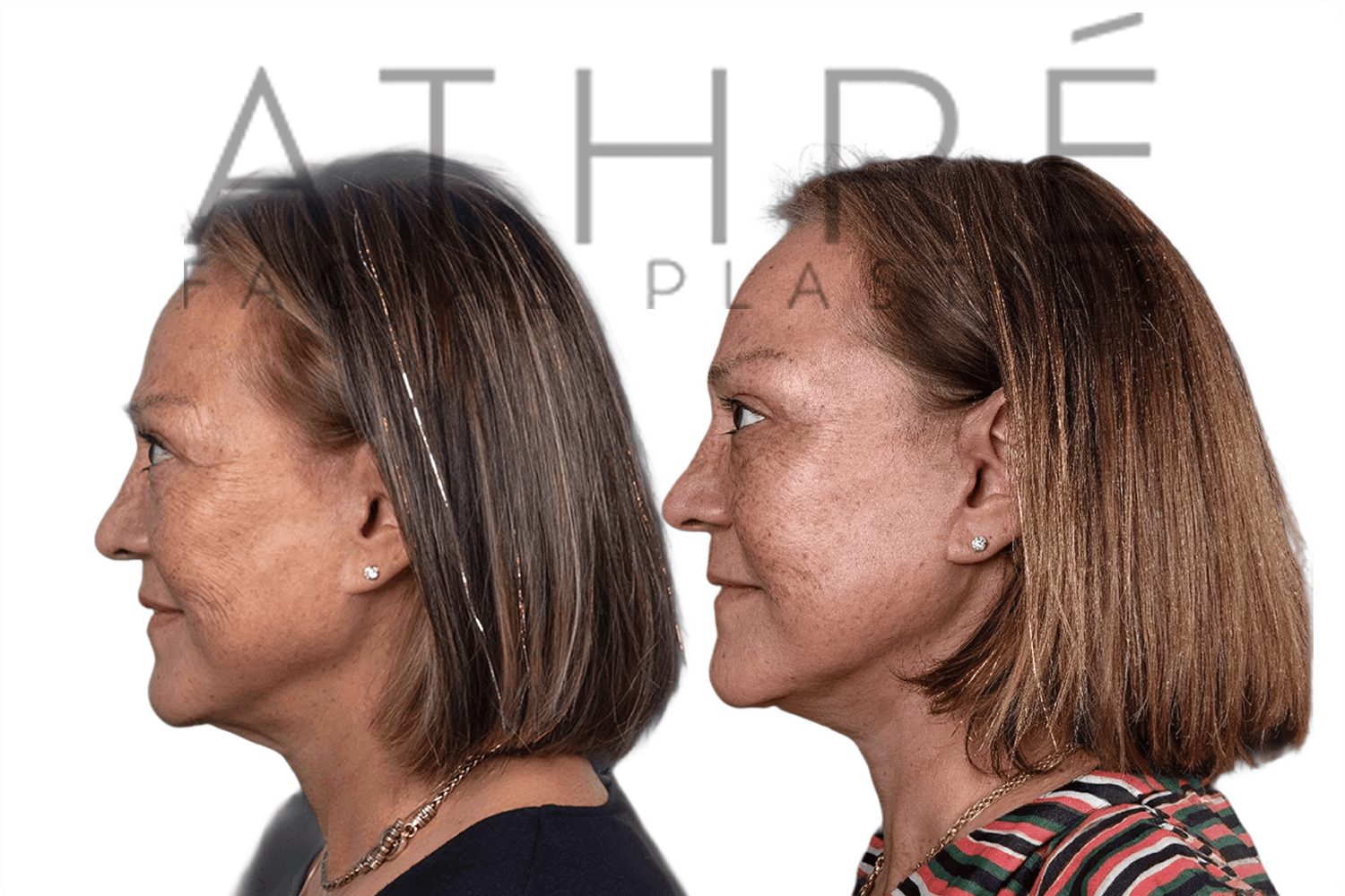 52 year old female after deep plane facelift (4D Facelift ™), autologous fat transfer to face, deep neck lift, stem cell nanofat treatment, chemical peel.