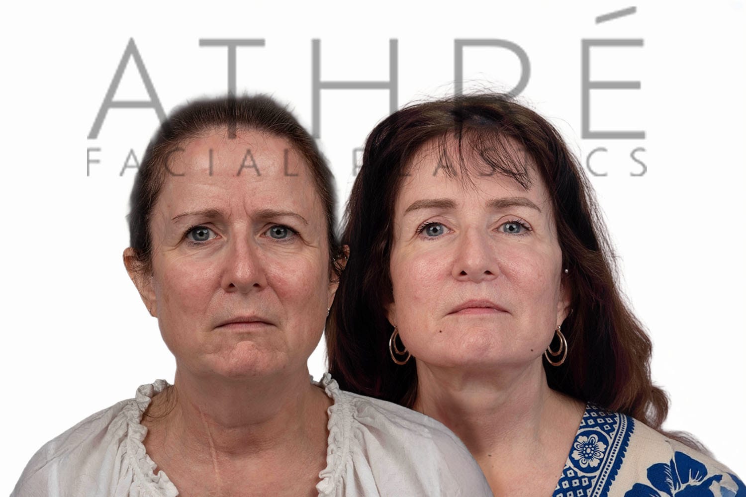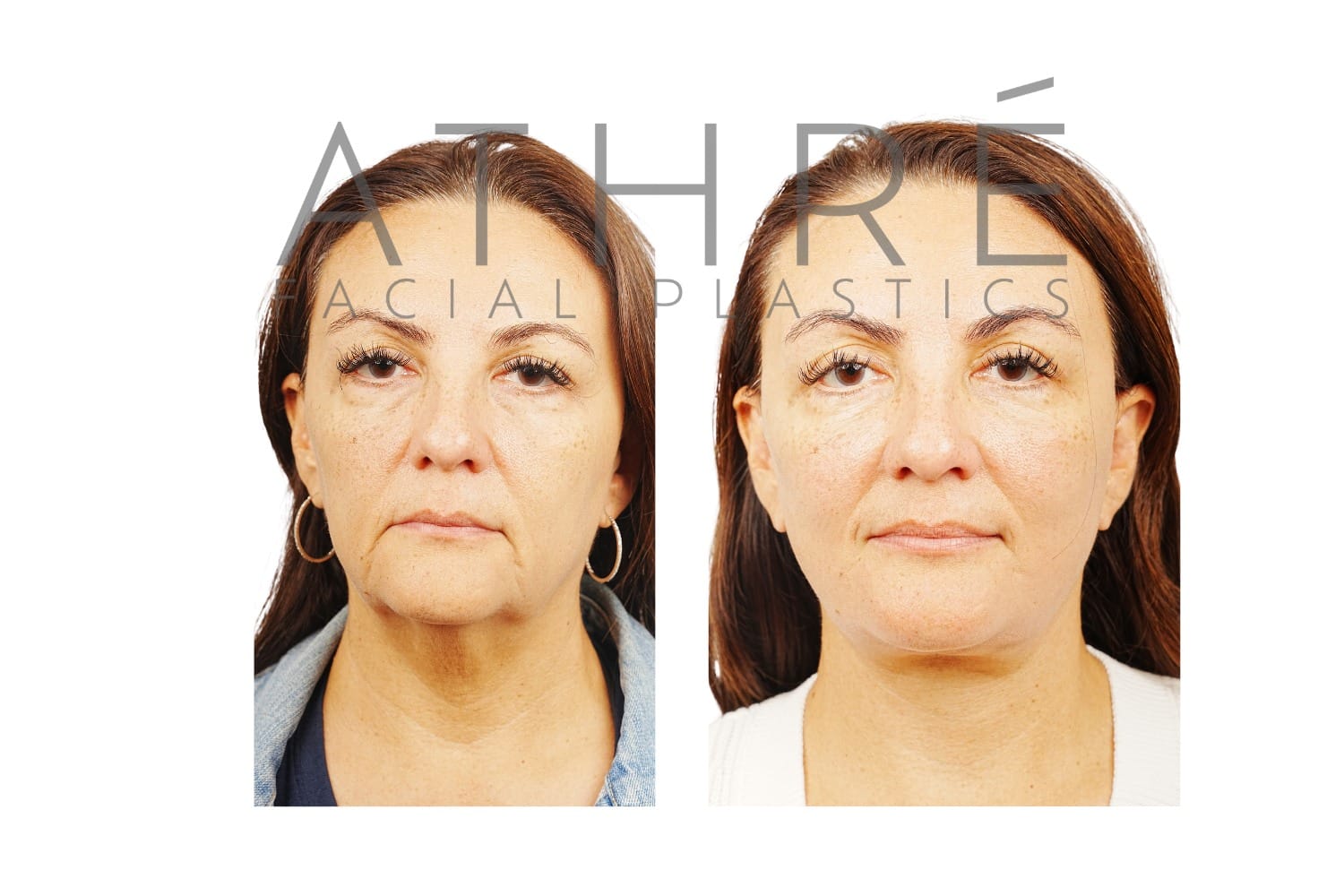 53 year female after deep plane facelift (4D Facelift™), deep neck lift, autologous fat transfer to face, stemcell nanofat treatment to face, upper blepharoplasty, lower blepharoplasty, lip lift.