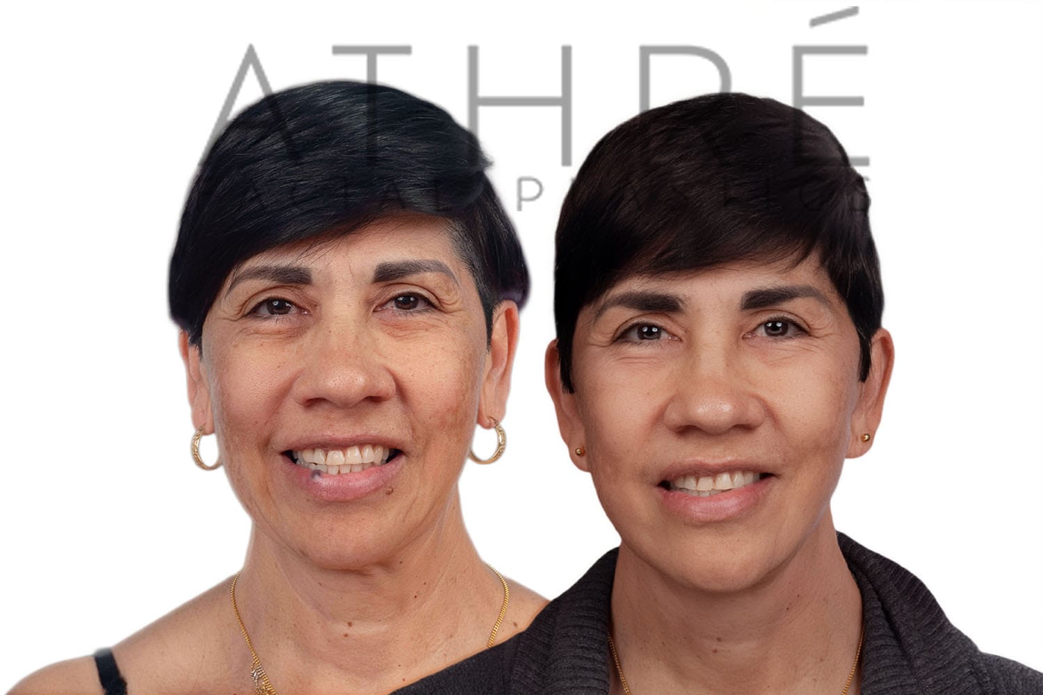 61 year old female after deep plane facelift (4D Facelift ™), upper blepharoplasty, autologous fat transfer to face, deep neck lift, lower blepharoplasty subciliary, stem cell nanofat treatment.
