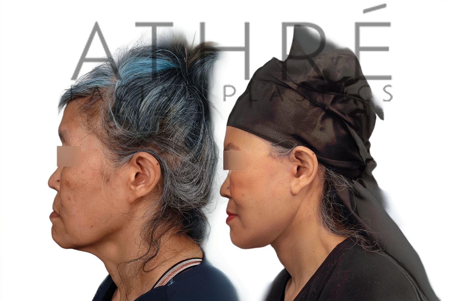 Female patient after deep plane facelift (4D Facelift ™), deep neck lift, lower blepharoplasty, autologous fat transfer (micro fat, milli fat, stem cell nano fat).