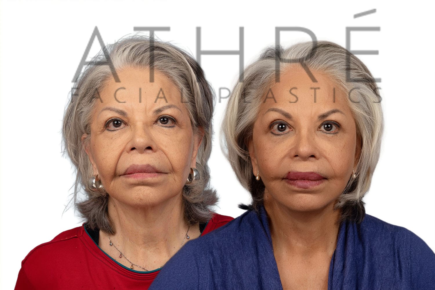 Female patient underwent deep plane facelift (4D Facelift ™), deep neck lift, upper blepharoplasty, lower blepharoplasty, lip lift lower lip augmentation with stem cell nano fat. Local anesthesia with oral sedation.