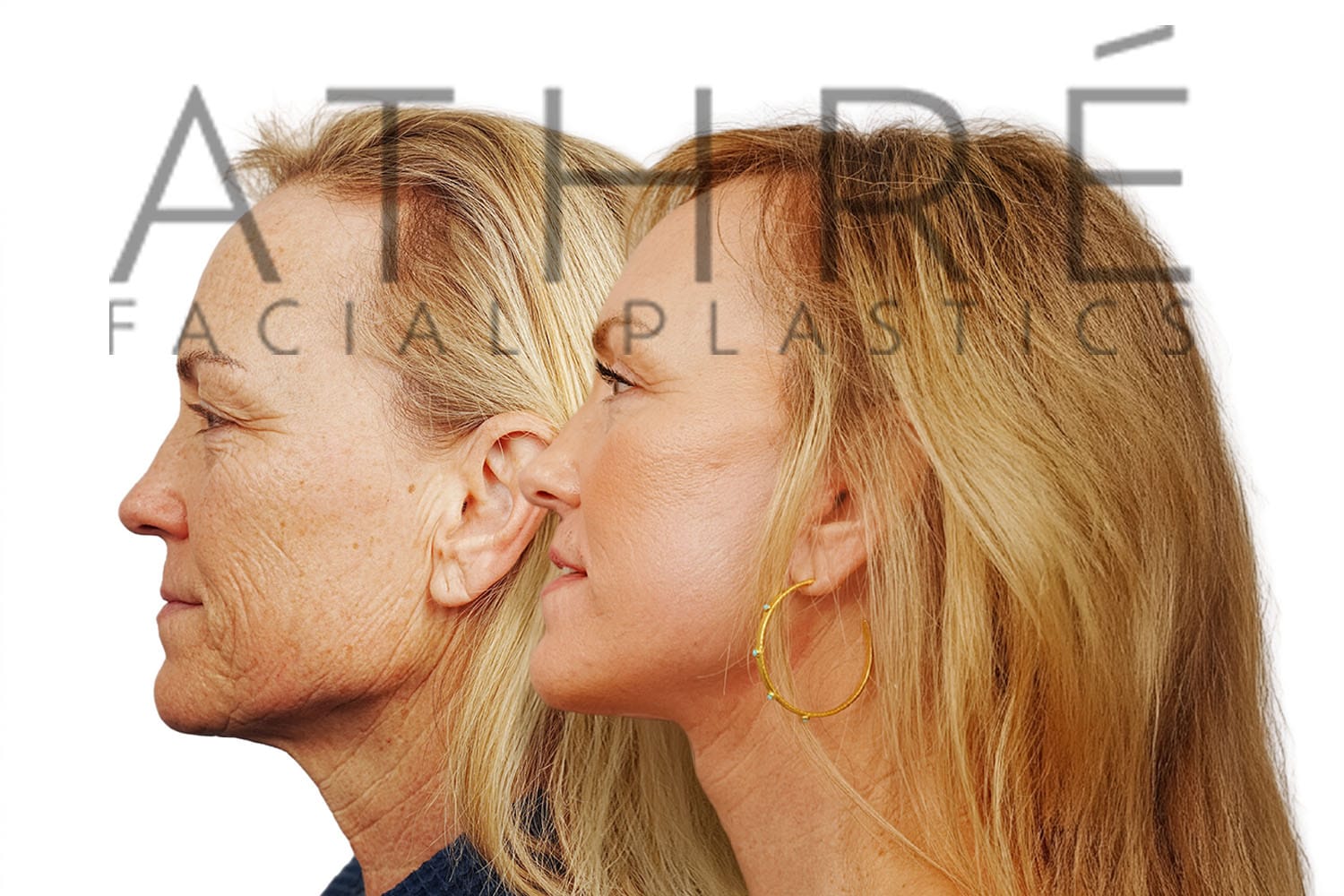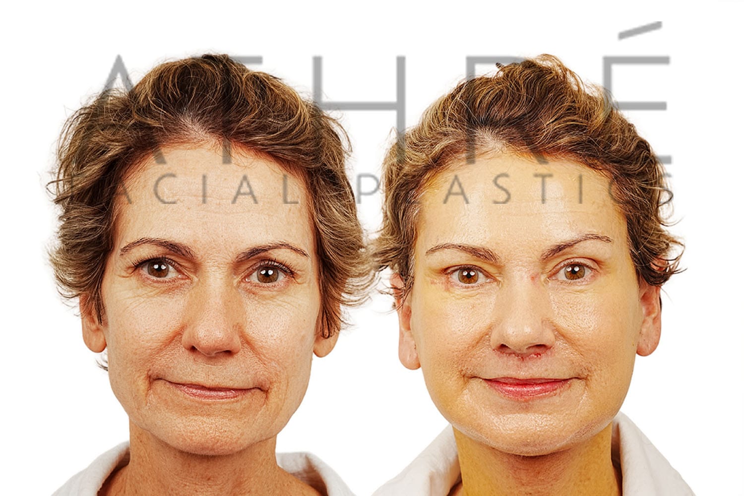55 year old female after deep plane facelift (4D Facelift ™), autologous fat transfer to face, brow lift, deep neck lift, stem cell nanofat treatment, full face chemical peel.