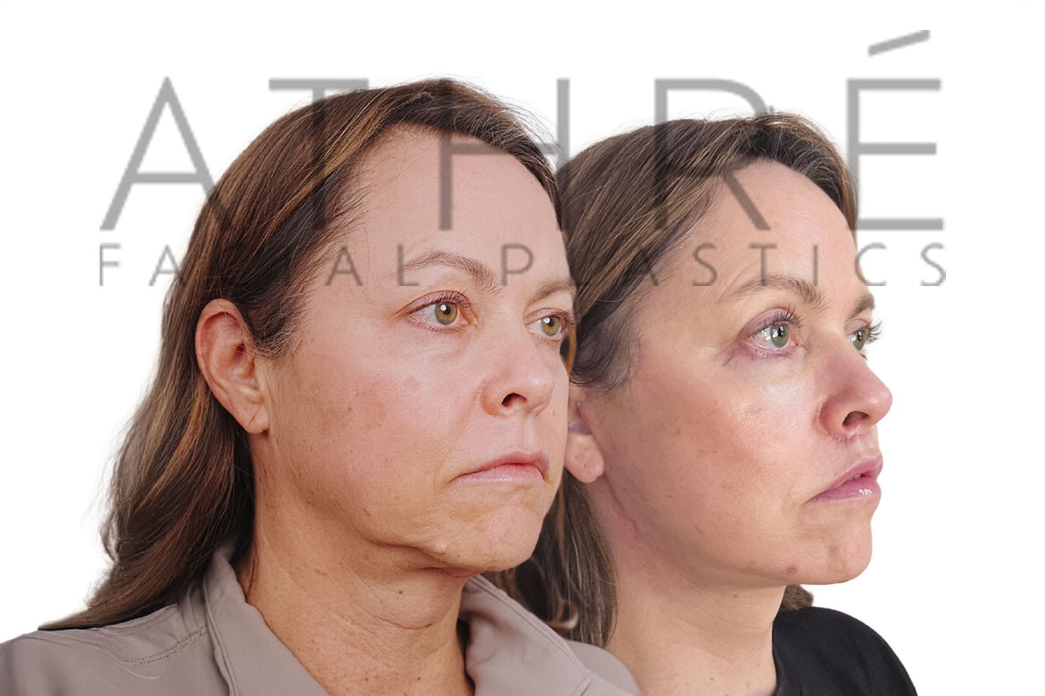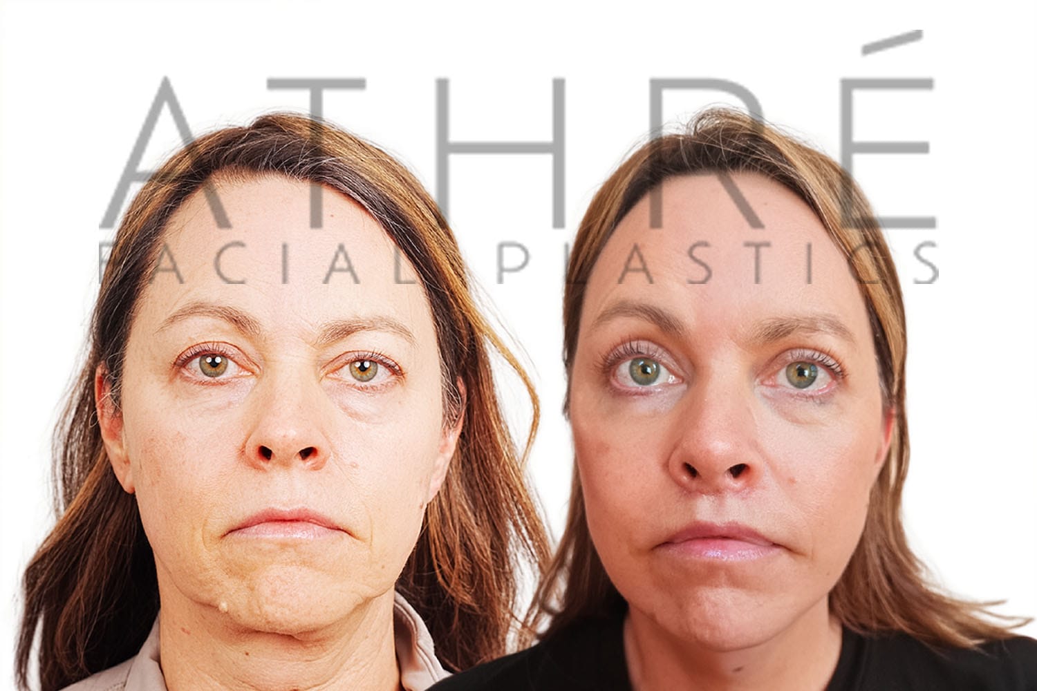 53 year old female after REVISION deep plane facelift (4D Facelift™), deep neck lift, autologous fat transfer to face, stemcell nanofat treatment to face. Revision lift secondary to prior cobra neck deformity by outside surgeon.